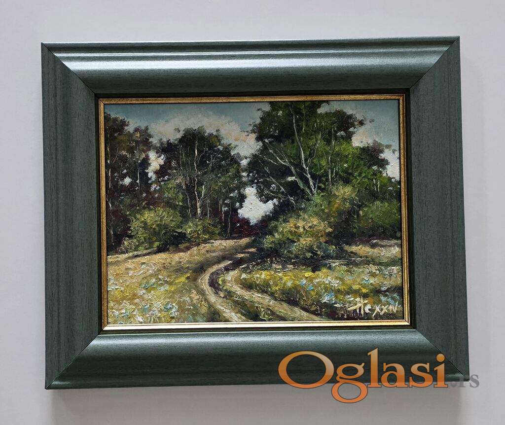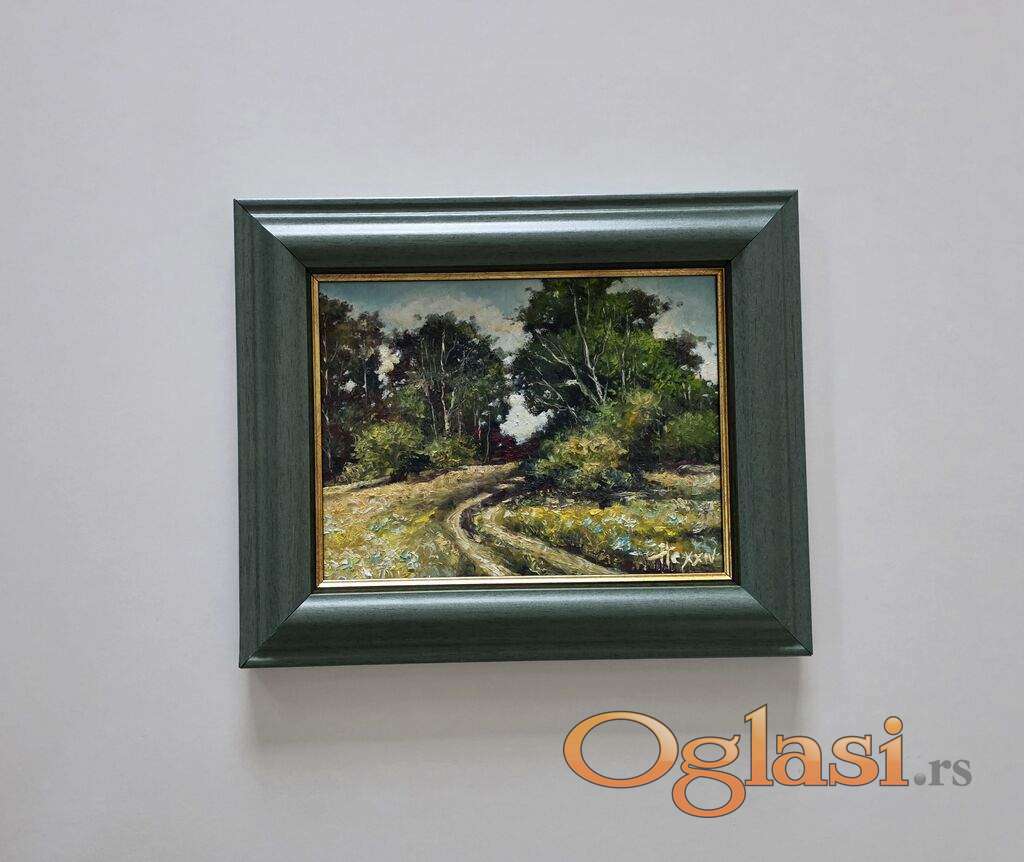 Ulje na medijapanu Sumski predah, prelepo umetnicko delo. Slika je uramljena u jako lep ram, dimenzije slike sa ramom 34 x 27. Privatna kolekcija.