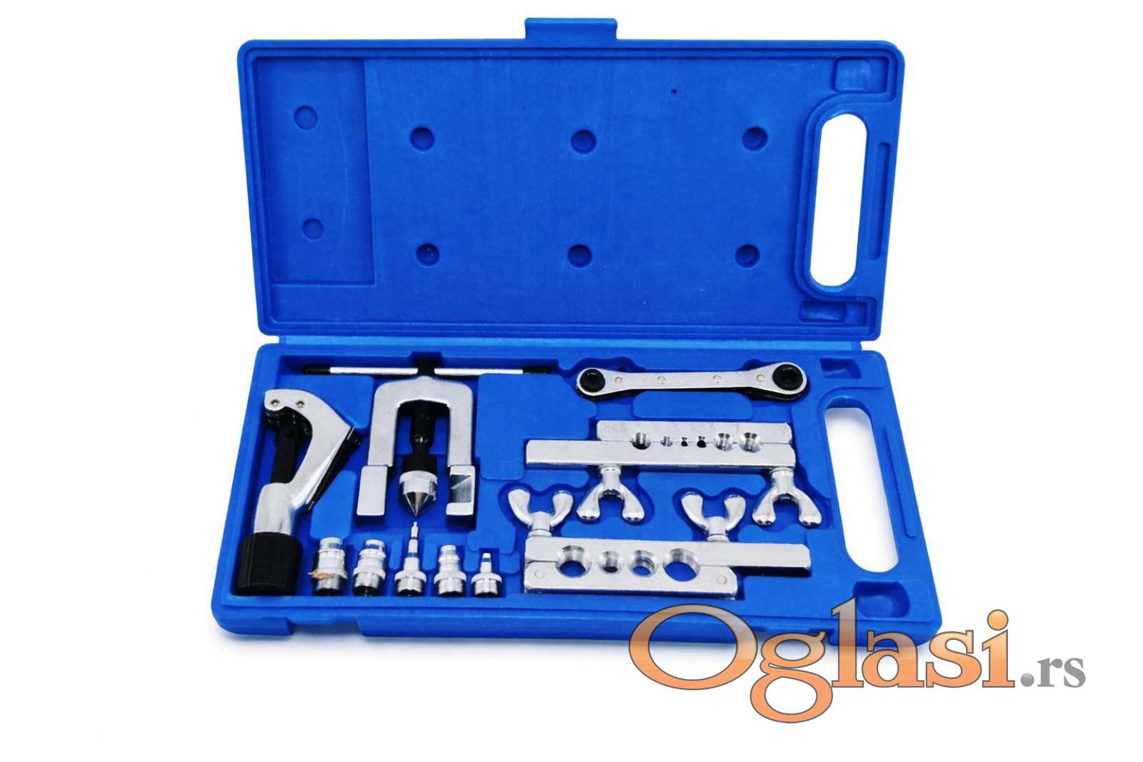 Uključuje rezač cevi i ključ sa čegrtaljkom