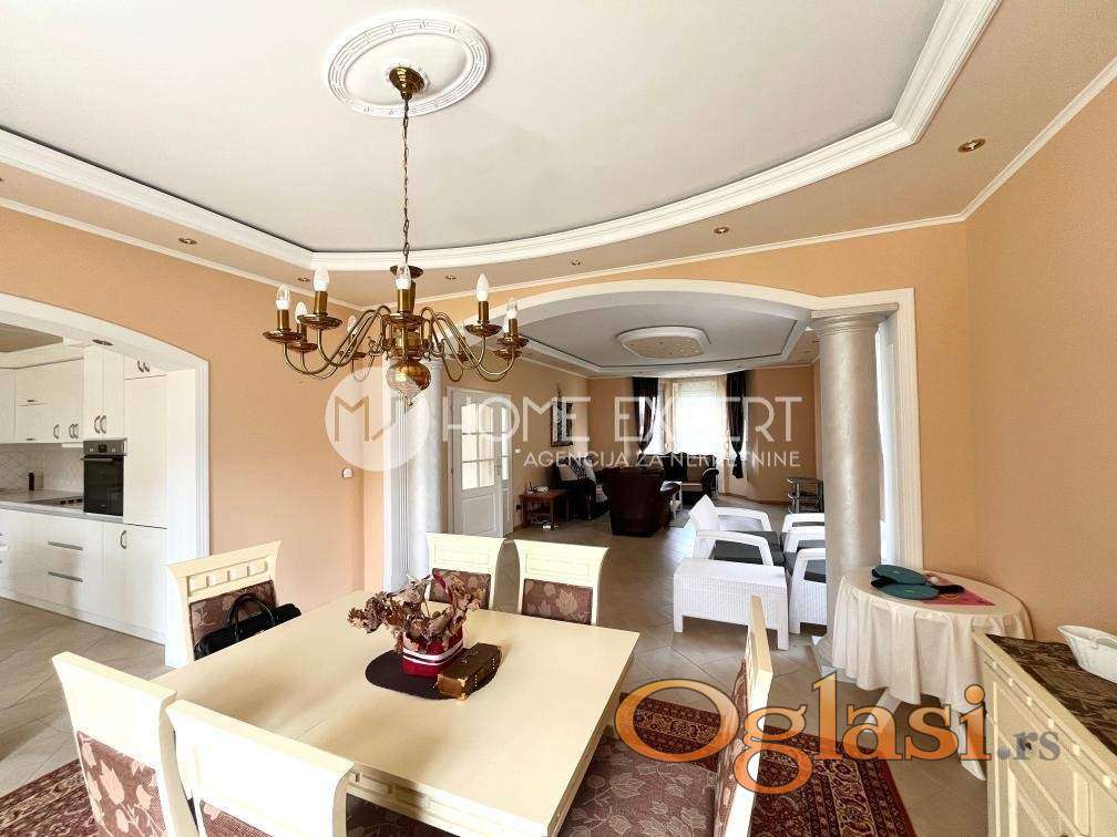 Sremska Kamenica, luksuzna vila na Tatarskom brdu korisne površine 362m2 na placu površine 766m2. Ova impresivna porodična vila smeštena je u elitnom naselju, u mirnoj ulici nadomak grada, idealna za sve koji žele privatnost, sigurnost i vrhunski komfor. Kuća je kvalitetno građena, po modernom projektu, završena 2006.godine ali u njoj niko nije živeo. Plac je prostran i lepo uređen i na njemu ima dovoljno mesta za izgradnju bazena i dodatnih sadržaja. U sklopu kuće nalazi se garaža za dva automobila. Kuća se sastoji od dva nivoa, prizemlja i sprata. U prizemlju se nalazi prostran dnevni boravak sa novom kuhinjom, trpezarija, terasa, kupatilo, toalet, jedna spavaća soba i ostava. Kuhinja je nekorišćena, opremljena novim uređajima. Pristup garaži moguć je i iz kuće. U sklopu kuće nalazi se i veliki podrum. Na spratu se nalaze još tri velike spavaće sobe, kupatilo, toalet, dve pomoćne prostorije, velika terasa i prostran hodnik sa svetlatnikom iz kog se ulazi u sve prostorije. Sve sobe su prostrane i svetle. Grejanje je centralno na gas. Dvorište je redovno održavano, zasađeno raznim ukrasnim rastinjem koje dodatno oplemenjuje i ulepšava izged kuće. Kuća je uknjižena i useljiva odmah nakon isplate. U cenu kuće uključena je kuhinja. Agencijska provizija iznosi 1,5% od cene nekretnine. Za više informacija ili razgledanje pozvati 060/4717-520. - Šifra nekretnine: 3000094