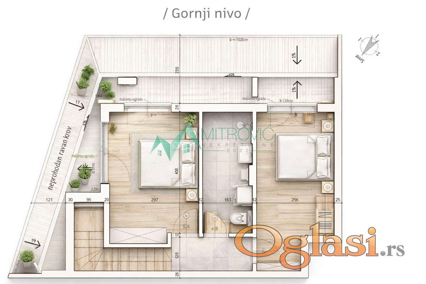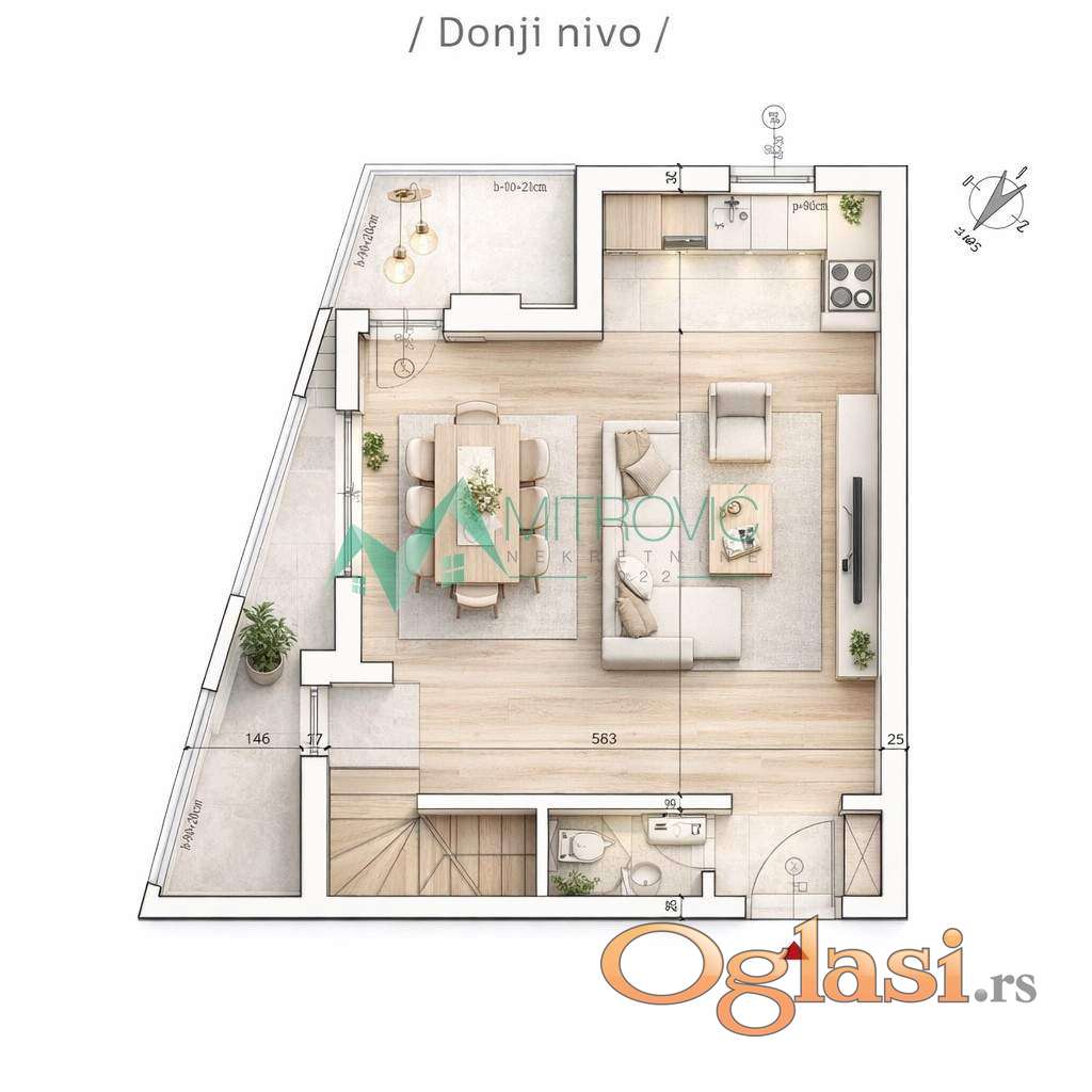Prodaje se trosoban stan u izgradnji u Petrovaradinu. Novi Majur. Odlična lokacija, dobro povezana gradskim autoubuskim linijama, blizina marketa, pijace, apoteke.. Nalazi se na drugom spratu, ulično orijentisan. Sadrži sledeće prostorije: na prvom nivou dnevna soba sa trpezarijskim delom i kuhinjom, terasa i hodnik, na drugom nivou dve spavaće sobe i kupatilo.