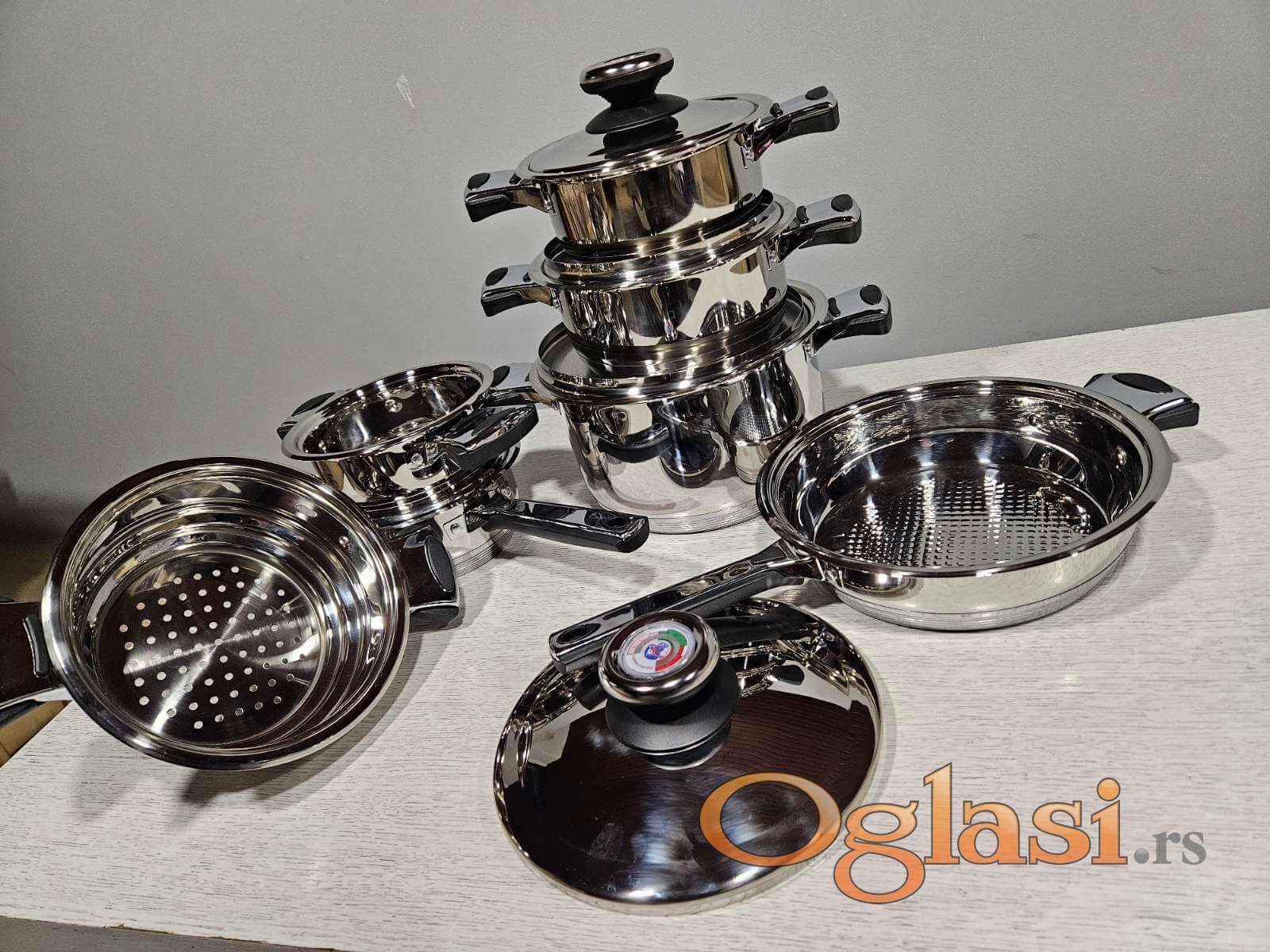 - +5 odgovarajućih poklopca sa meračem temperature i sa termo ruckama od nerdjajuceg celika.