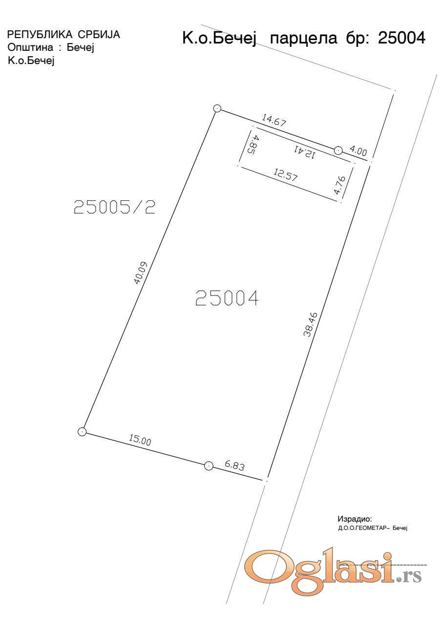 Katastarska Parcela 21220 Bečej broj 25004.