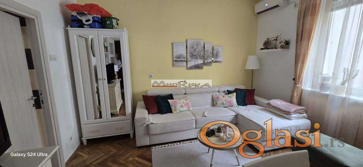 Zvezdara-kod Opštine, Bulevar Kralja Aleksandra ulica, 1.0,30kvm, namešten i renoviran salonac, dvorišno orjentisan pa nema buke, grejanje na klimu i NR (info stan 3400din), katv+internet 3100din, odvojena kuhinja+1 velika soba, NOV nameštaj, useljiv 01.05. 550e+DEP+ag.provizija 50% (br.reg.220) 061/7000368