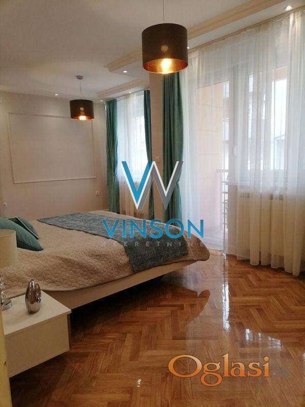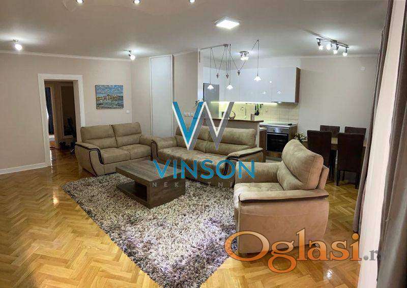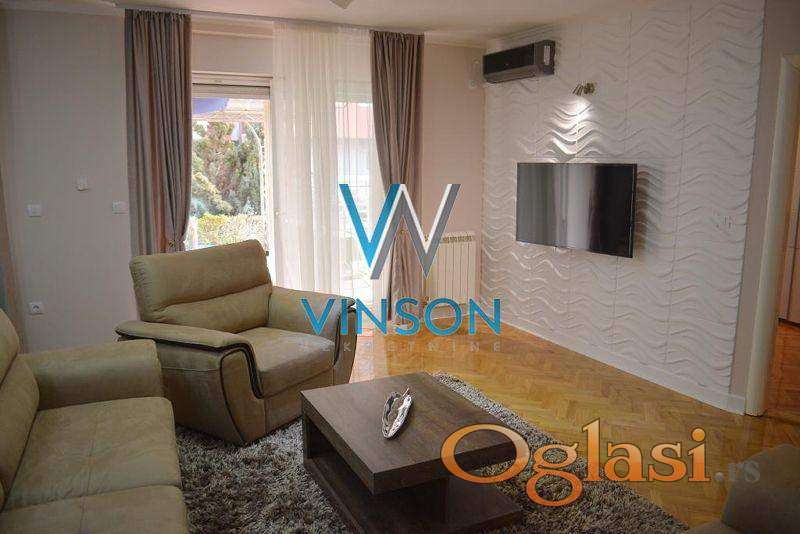Novi Sad, Grbavica, ulica Zorana Petrovića. Nov, veoma komforan, apartmanski namešten troiposoban stan na jednoj od najtraženijih lokacija za stanovanje. Neposredna blizina škola, vrtića, pijace, zgrade NIS-a, TC Merkator i Promenada. Ovaj lep i svetao stambeni prostor zauzima prizemlje urbane vile sa malim brojem stambenih jedinica. Sačinjavaju ga veoma komforan dnevni boravak sjedinjen sa trpezarijom i savremeno opremljenom kuhinjom, spavaći blok od tri sobe, garderober, dva kupatila (oba sa kadom), tri ostave, dve manje i jedna velika, dvorišna terasa. Mogućnost korišćenja zajedničke teretane u okviru vile. Garaža i parking mesto. Cena zakupa sa svim režijskim troškovima i garažom iznosi 1.500 EUR. Izdavanje na vremenski period od minimum godinu dana. Useljiv odmah. (Vinson nekretnine, Novi Sad, Reg. br. posrednika: 1085)