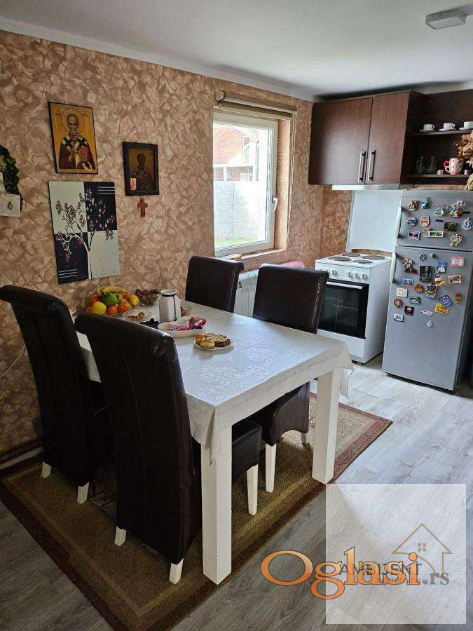 - Kuća se sastoji od ulaznog hodnika, kuhinje sa trpezarijom, velike dnevne sobe, spavaće sobe, jedne manje sobe, kupatila.