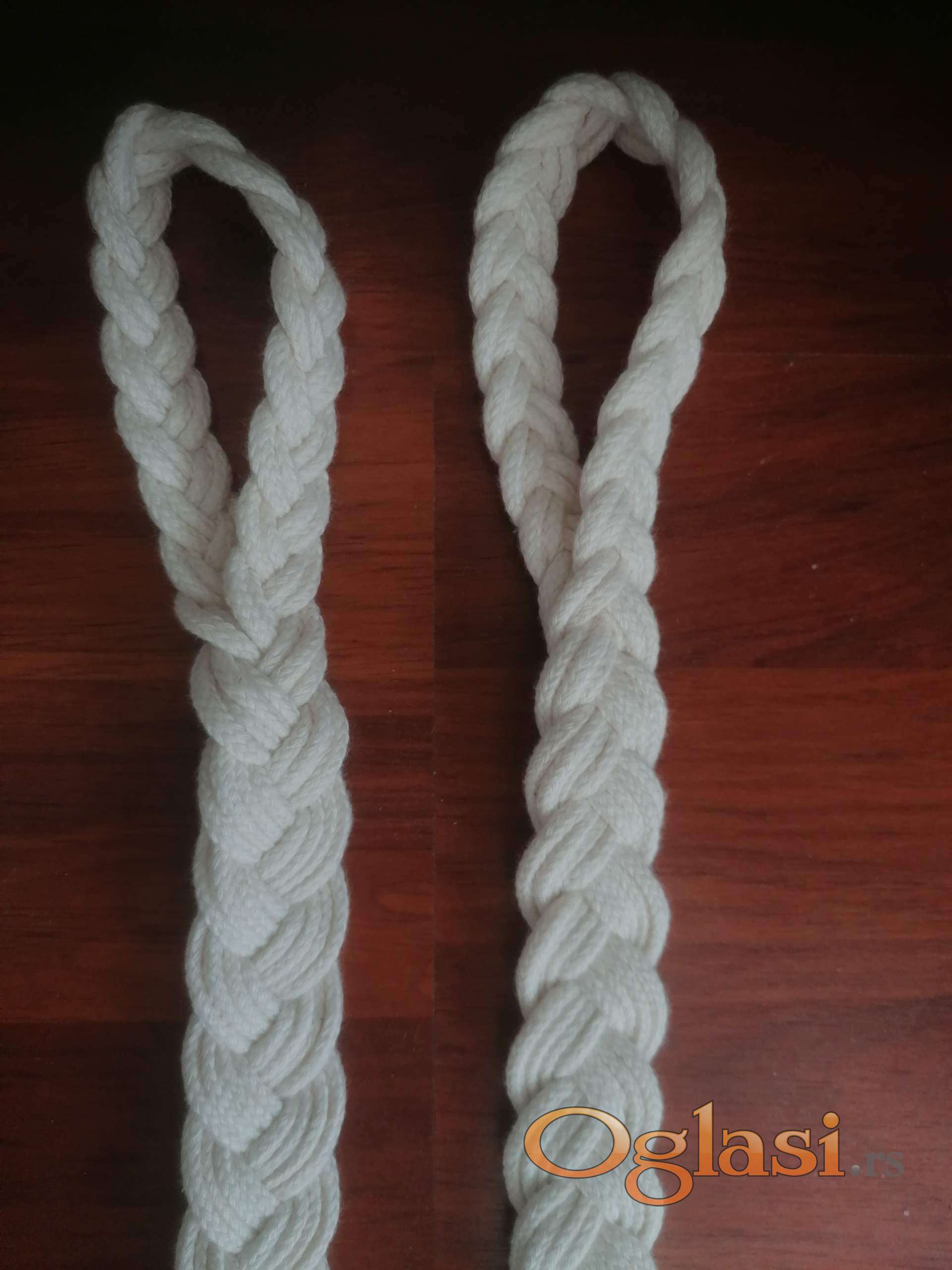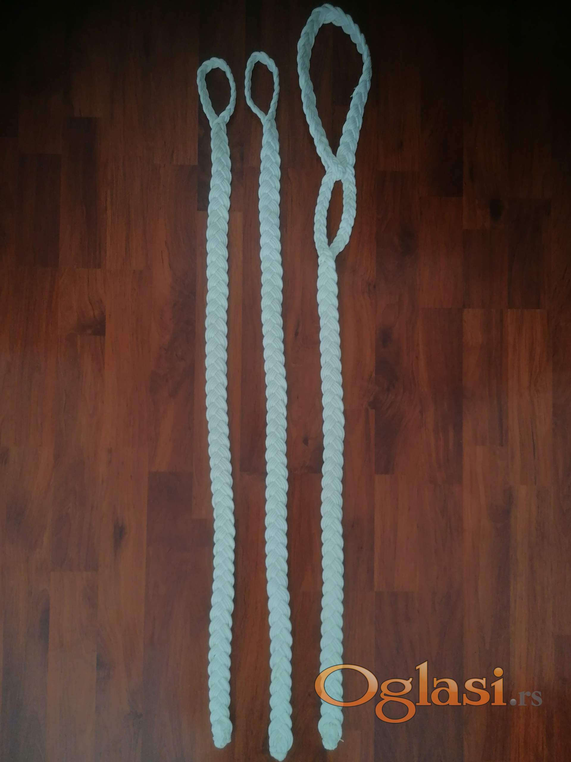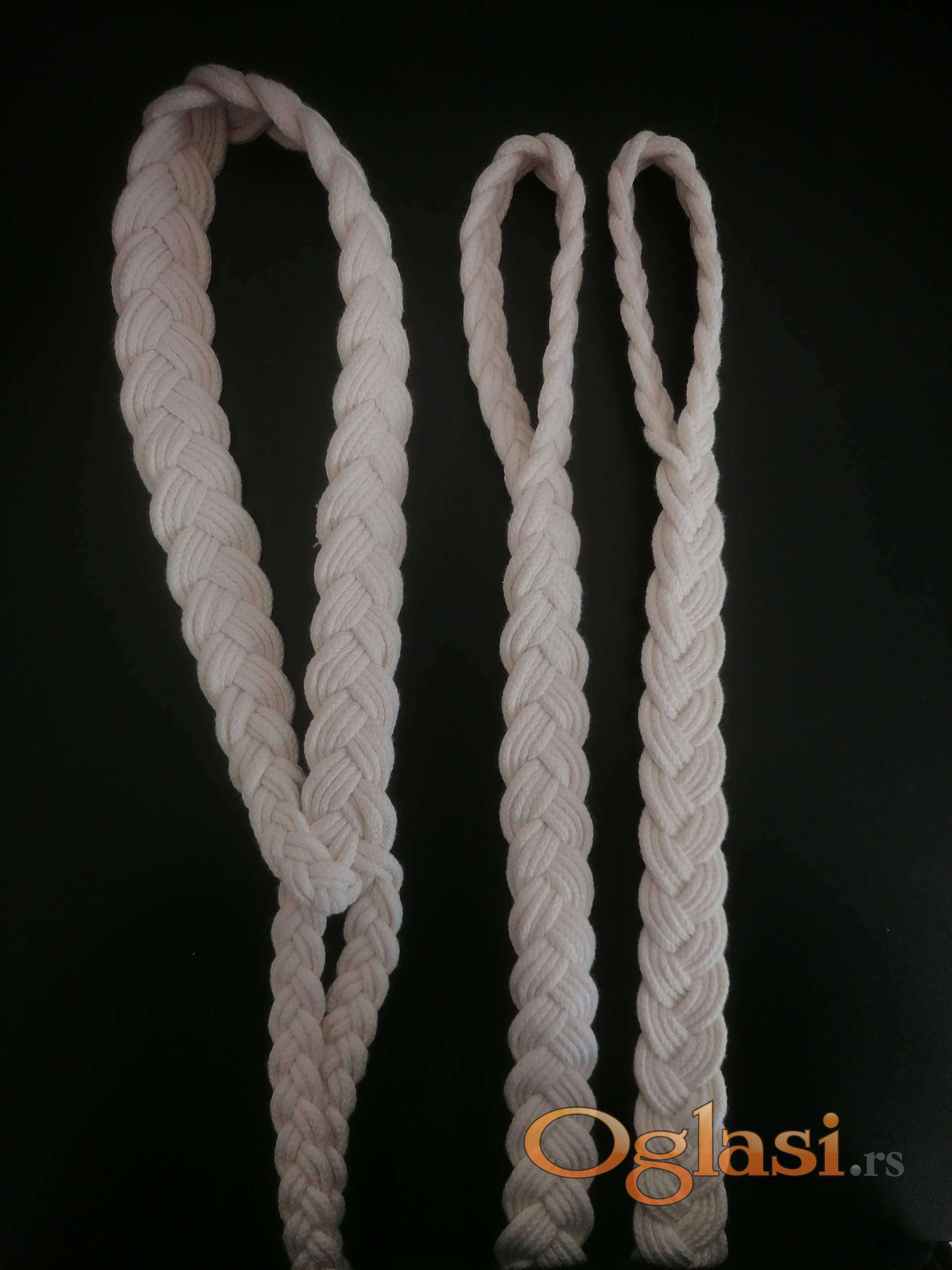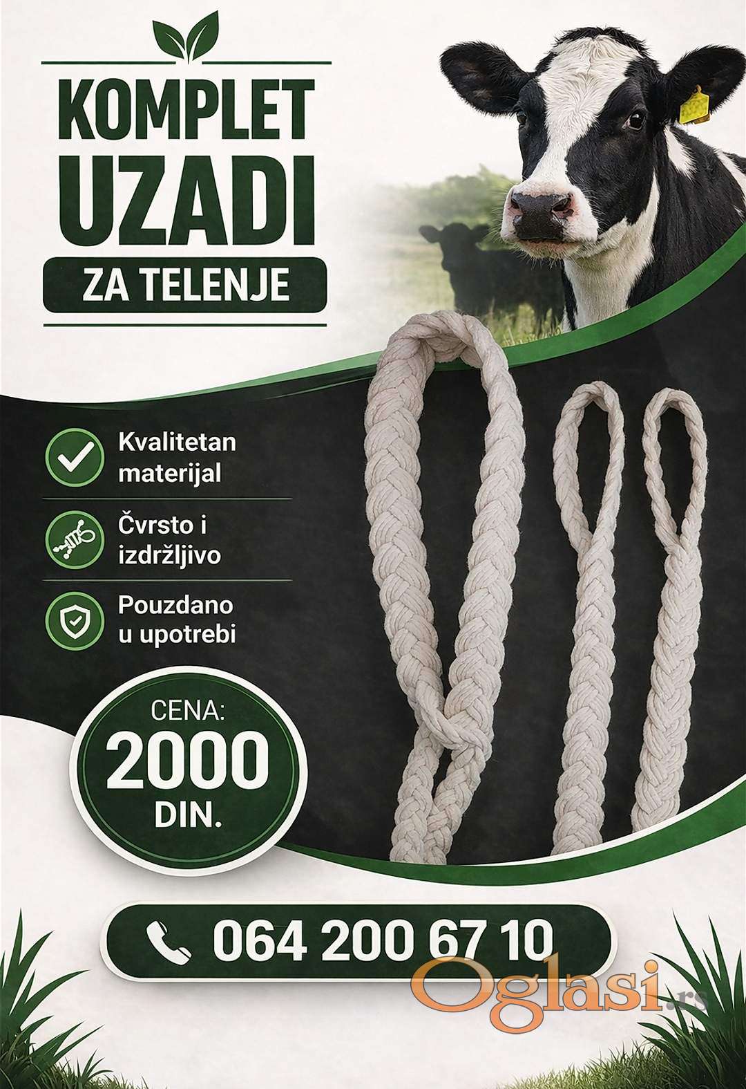 Komplet užadi sastoji se od 3 uzeta:jedan za glavu i dva za noge teleta. Ovaj način pletenja ga čini mekim i ne otire kožu teleta. 100% pamuk.