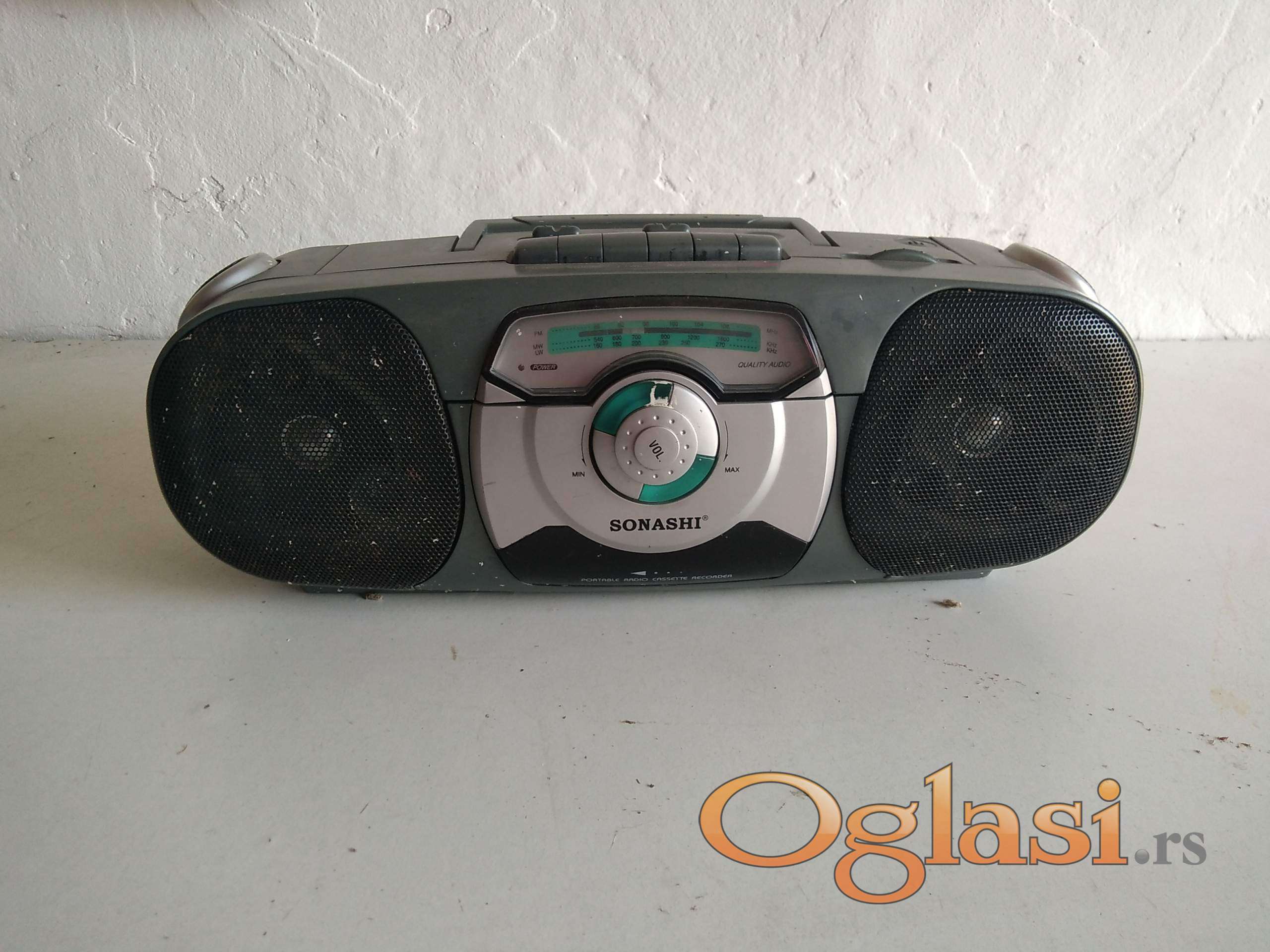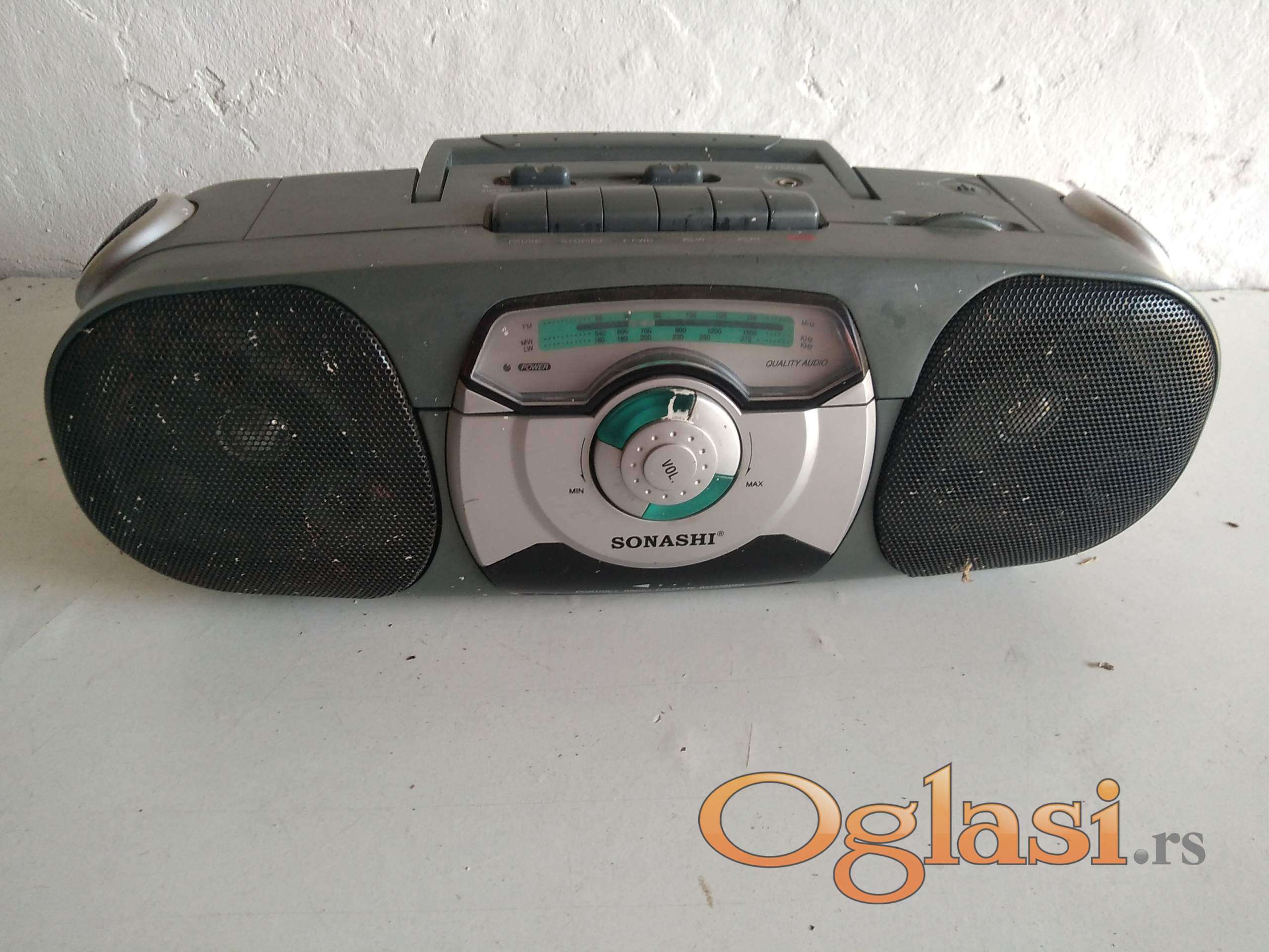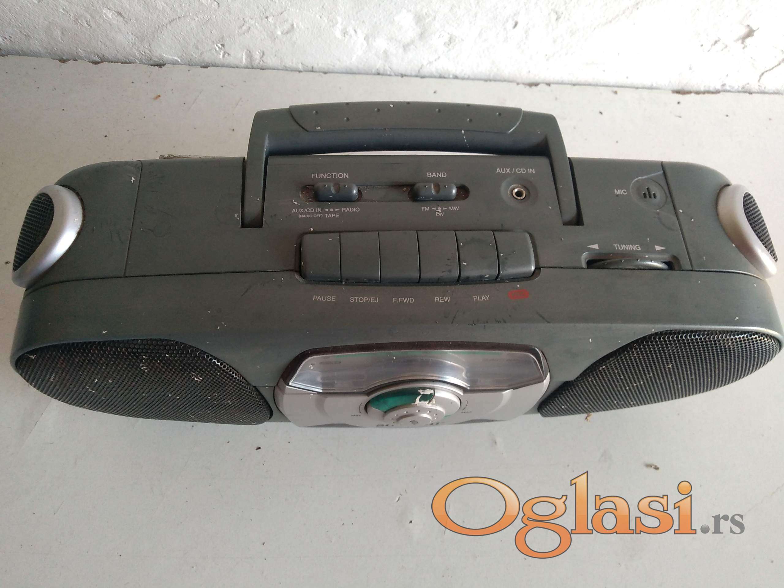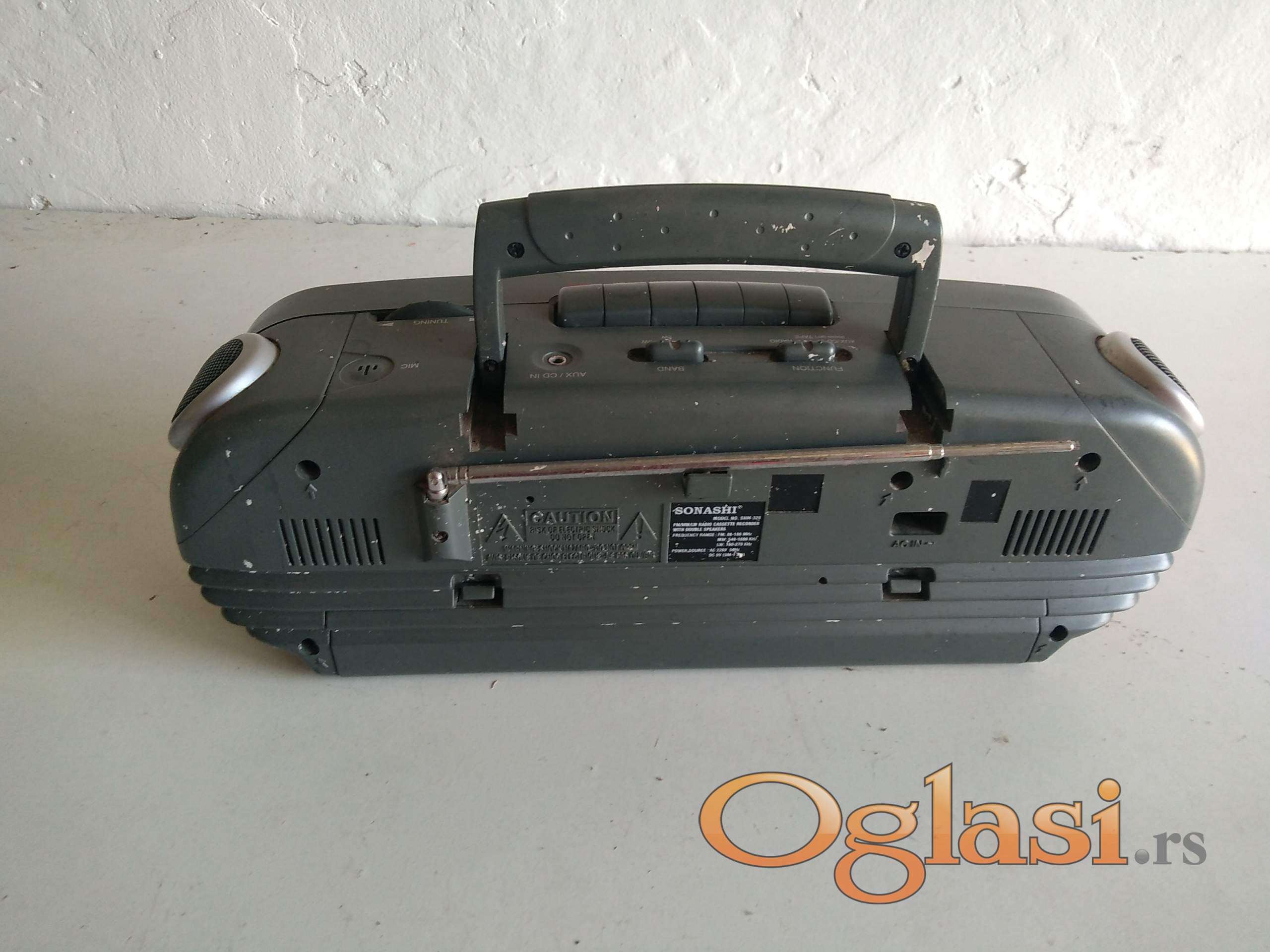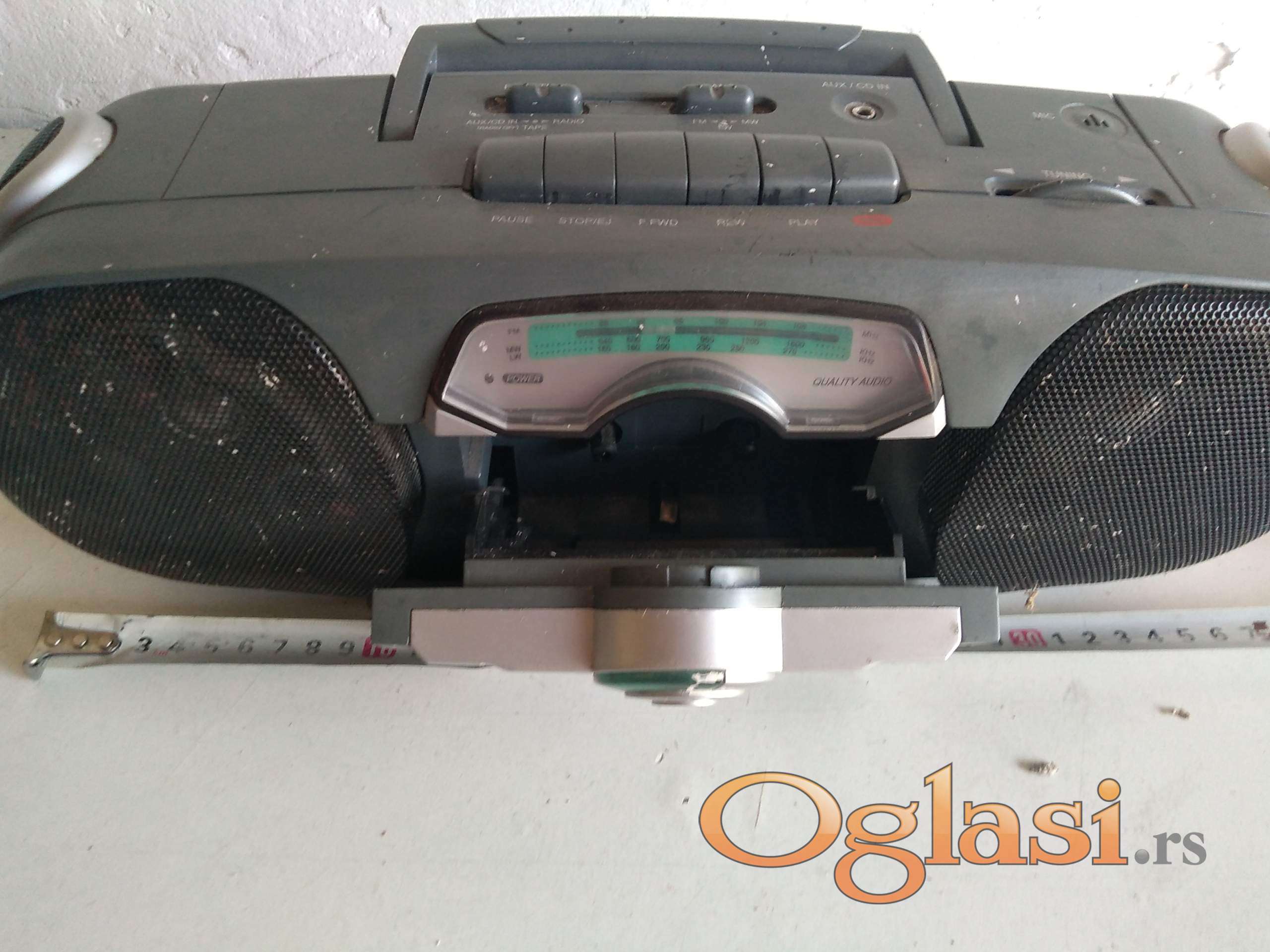 radio je ispravan . kasetofon ne radi ( verovatno je gumica jer se čuje motor da radi ) . antena je polovna ali radi . dolazi sa kablom za struju .