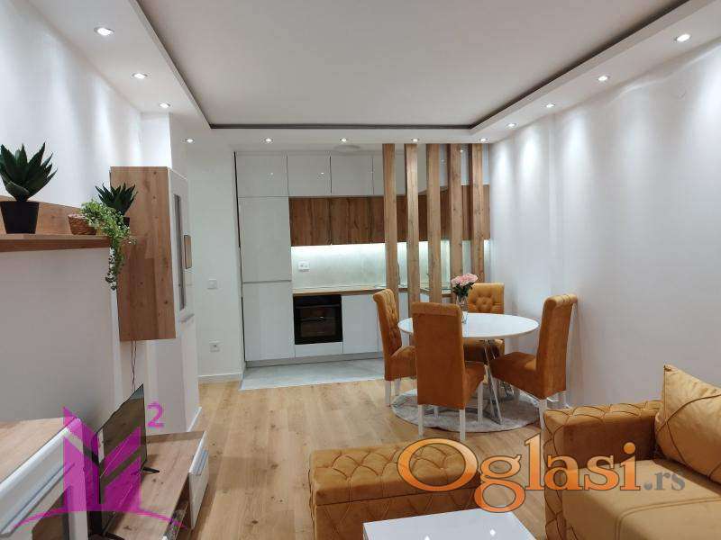 Stan je opremljen novim nameštajem. Sastoji se iz hodnika, dnevne sobe sa trpezarijom i kuhinjom, odvojenom spavaćom sobom, jednim sanitarnim čvorom i terasom.
