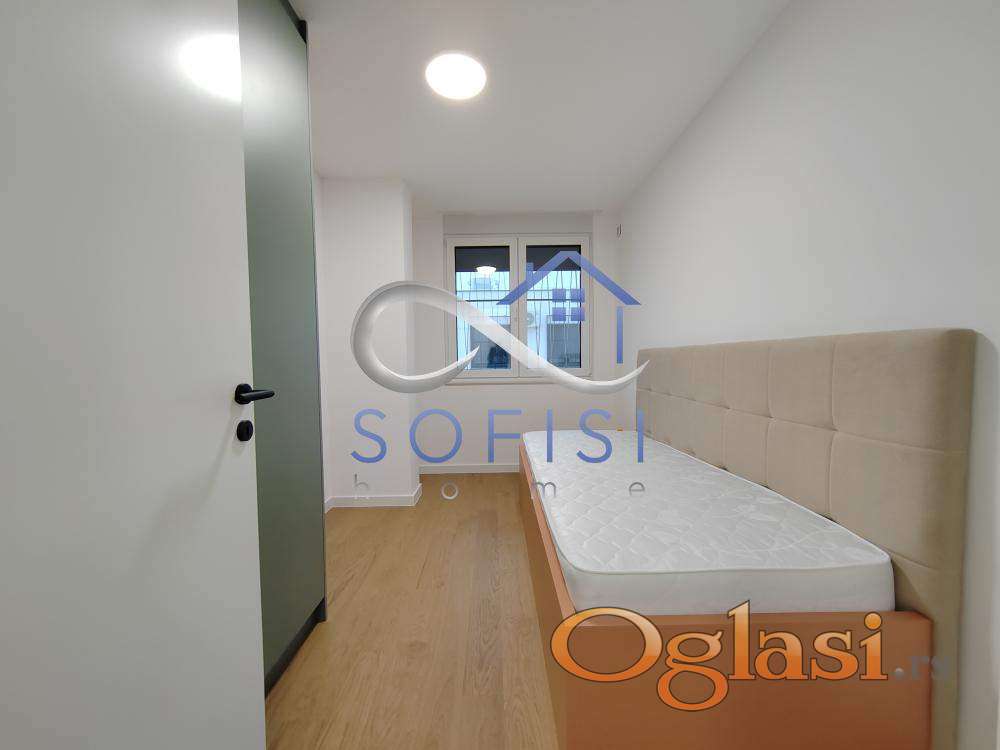 Novi Sad, Telep, ulica Heroja Pinkija. Izdvajamo iz ponude nov, neuseljavan, namešten dvoiposoban stan na IV (poslednjem) spratu tek izgrađenog stambeno-poslovnog objektu visokog kvaliteta gradnje. Ovaj lep stambeni prostor opremljen potpuno novim nameštajem i belom tehnikom čine prostran dnevni boravak sa trpezarijom i savremeno opremljenom kuhinjom sa mašinom za pranje posuđa, dve spavaće sobe, hodnik i veliko kupatilo sa tuš kabinom. Sav komadni nameštaj koji ne vidite na fotografijama dnevne zone Zakupodavac će obezbediti o svom trošku u zavisnosti od potreba Zakupca. Dakle, stan je sa namerom oglašen u kategoriji nameštenih stanova, kako biste po svojoj meri mogli da birate izgled dnevnog boravka. Uvedena optika u zgradu. Ulično orijentisan. U prizemlju zgrade supermarket, ispred zgrade autobusko stajalište. Cena zakupa sa režijskim troškovima iznosi ________ EUR. Mogućnost zakupa garažnog parking mesta po ceni od 100 EUR. Izdavanje isključivo na dug vremenski period zakupcima bez kućnih ljubimaca. Useljiv odmah.