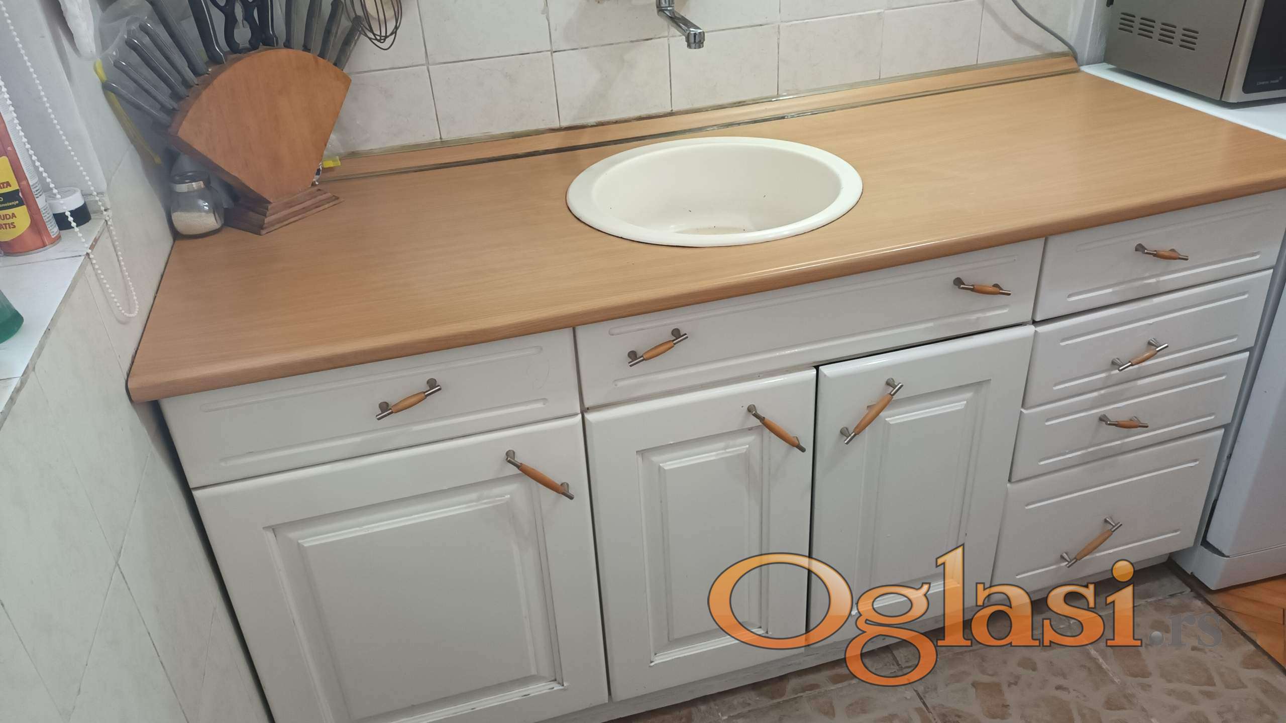 Prodajem kompletnu kuhinju, frontovi su od medijapan. Dimenzije donjeg dela kuhinje: dubina 60cm, dužina 160 cm, visina 83cm. Dimenzije gornjeg dela: dubina 30cm, dužina 160 cm, visina 83cm. Kuhinja je polovna, korišćena, cena cele kuhinje 30.999,00 dinara.