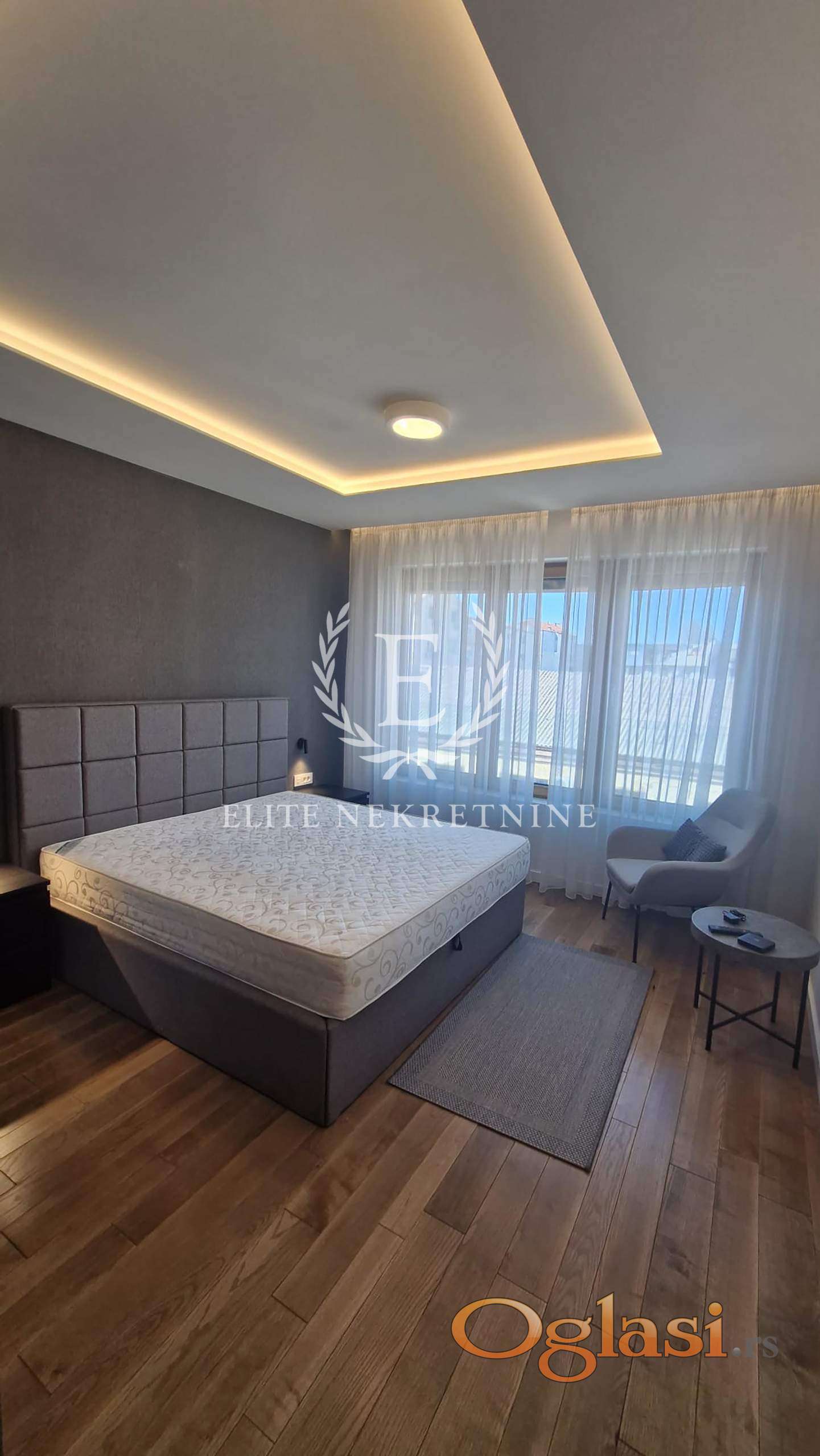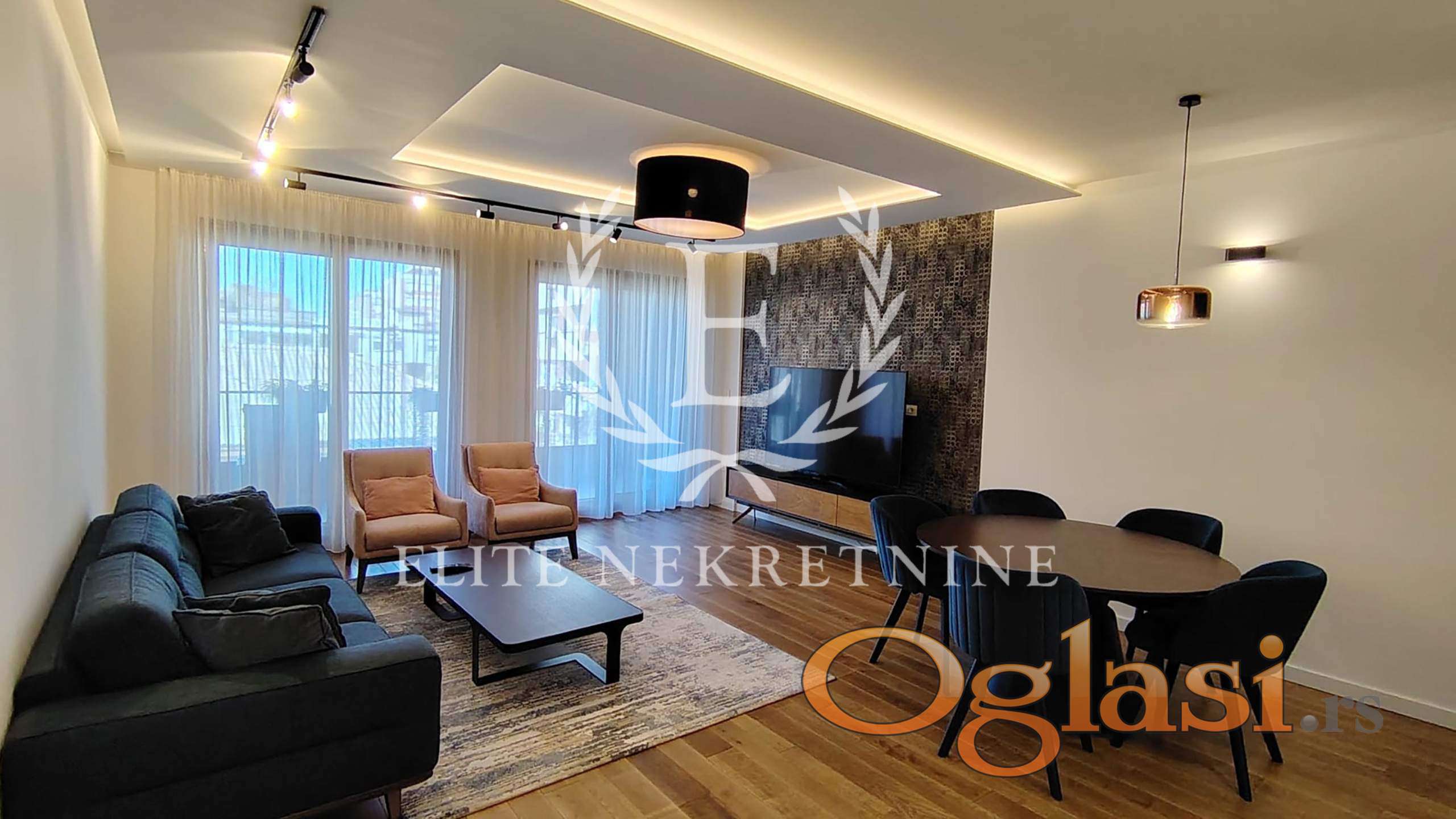 Ovaj elegantan četvorosoban stan smešten je na četvrtom spratu nove, vrhunski građene zgrade sa liftom. Prostor odiše sofisticiranošću i pažljivo biranim detaljima, a enterijer je opremljen luksuznim italijanskim nameštajem koji pruža osećaj prestiža i udobnosti.