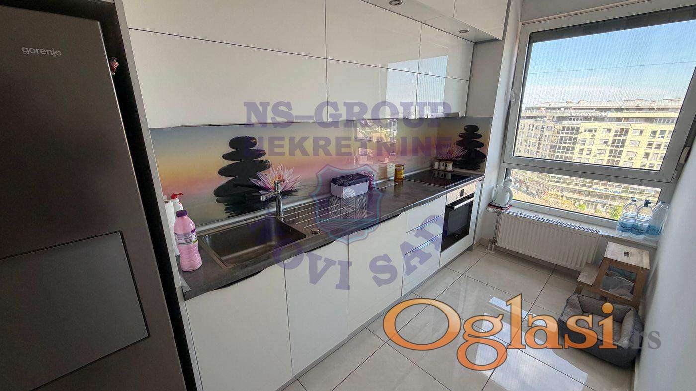 Na prodaju izuzetan stan od 110m² na osmom spratu, sa prelepim otvorenim pogledom i odličnim rasporedom prostorija koji pruža maksimalan komfor za porodični život. Stan je uknjižen 1/1 na vlasnika, bez tereta, a u cenu su uključeni svi ugradni elementi kao i kompletna kuhinja sa belom tehnikom, dok je za ostatak nameštaja moguć dogovor. Postoji i mogućnost kupovine garaže u suterenu zgrade, što ovu nekretninu čini kompletnom i izuzetno atraktivnom ponudom.