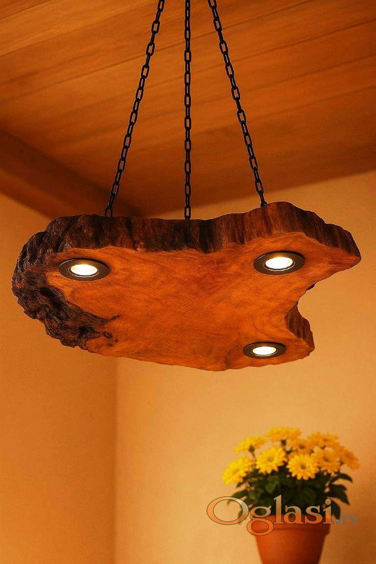 Uljepšajte svoj životni prostor uz našu zapanjujuću luster / visilicu od drveta Mazer-a. Izrađena od nepravilnog komada laganog drva Mazera, ovo je savršen spoj rustičnog šarma i moderne funkcionalnosti.