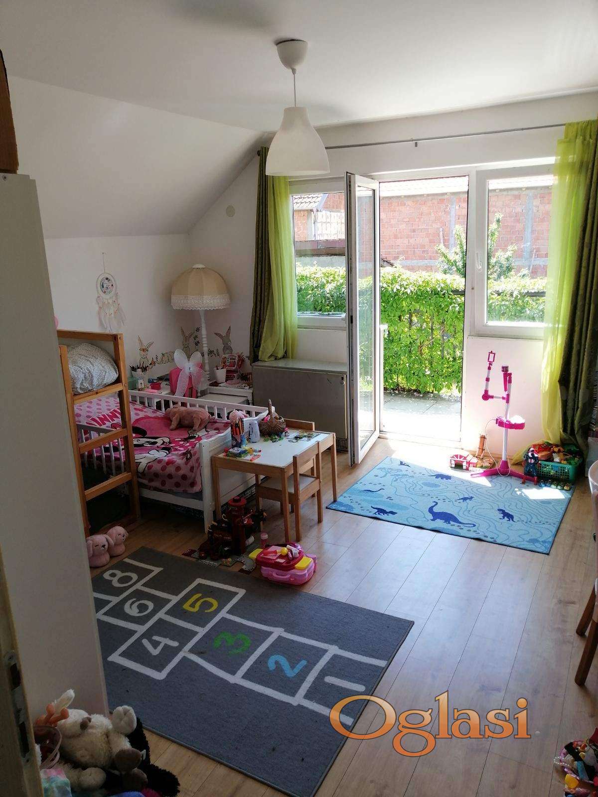 Jedan veci od 85m2, na spratu dve velike sobe, jedna sa terasom koja gleda na dvoriste kuce, donji deo, hodnik, kupatilo, kuhinja, trpezarija, dnevni boravak i izlazak na terasu i dvoriste!