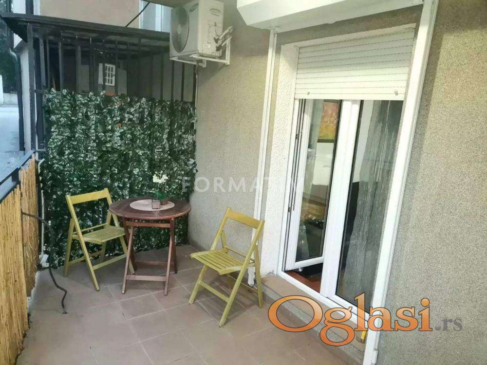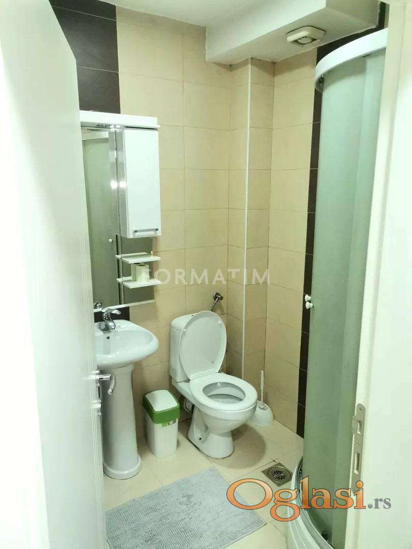 Apartment for rent in Tikveška Street, Lekino Brdo, with a total area of 53 m². This is a two-room, modernly furnished and fully equipped apartment located on the ground floor of a four-story building, recently renovated and ready for immediate move-in. The living area is 41 m², complemented by a spacious terrace of approximately 12 m² stretching along the entire apartment and accessible from both rooms. Although situated on a lower ground level, the apartment faces a quiet courtyard and garage access road, ensuring privacy and minimal noise, with additional security provided by roller shutters on the windows. The layout includes a living room with sleeping area, kitchen, bathroom, and terrace, and the apartment is fully equipped with internet, TV, air conditioning, washing machine, dishwasher, refrigerator, freezer, microwave, stove, oven, beds, and wardrobes. It features central heating for consistent comfort. A garage space within the building is available for rent at €50, and there is also an additional parking spot. Suitable for families, smoking is allowed, while pets are not permitted. Monthly utilities range from 14,000 to 18,000 RSD, and a deposit of €600 is required. Agency commission is 50% of the first agreed monthly rent, paid once.
