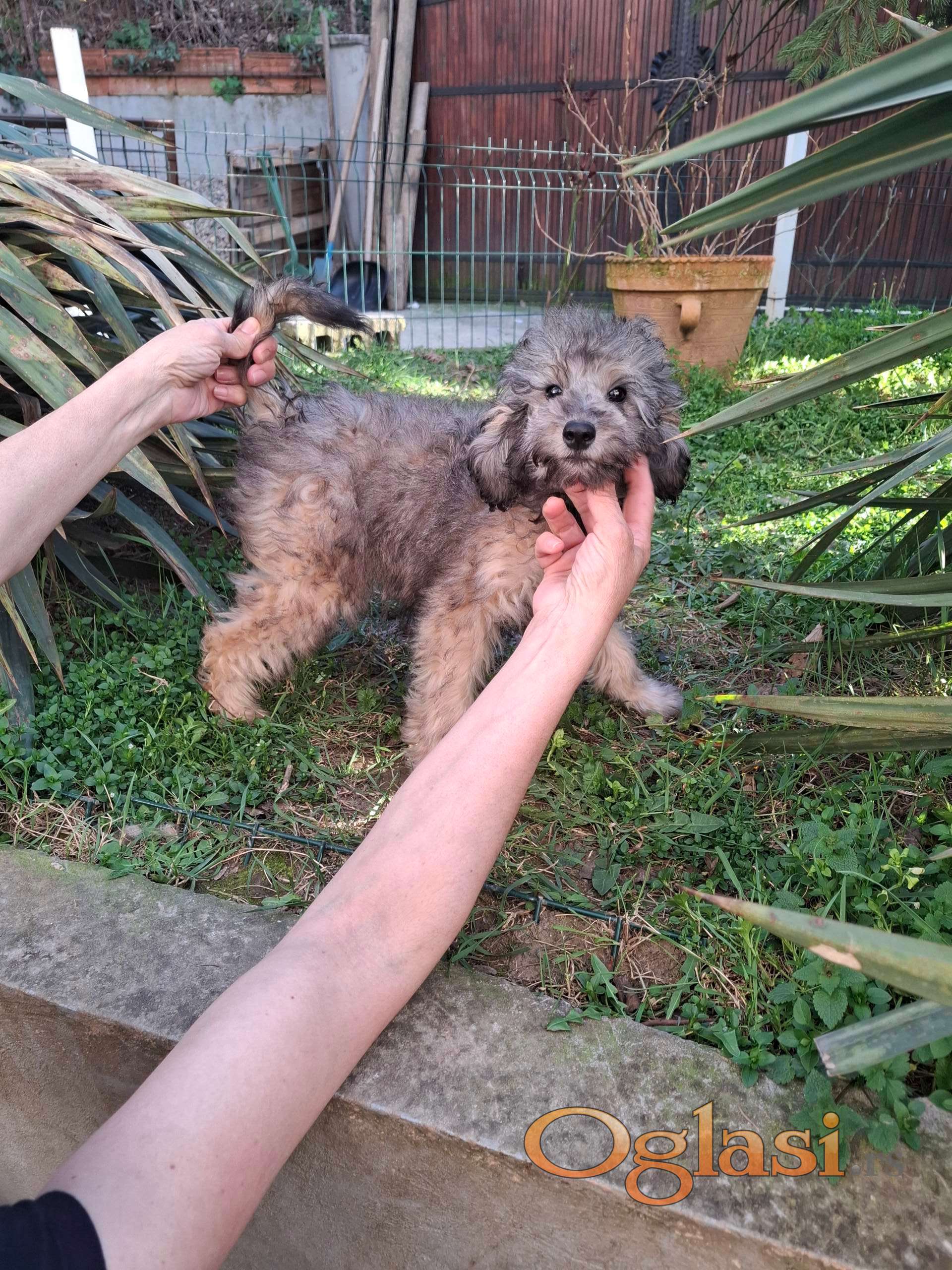 Srednja pudla silver sejbl, mužjak star četiri i po meseca.