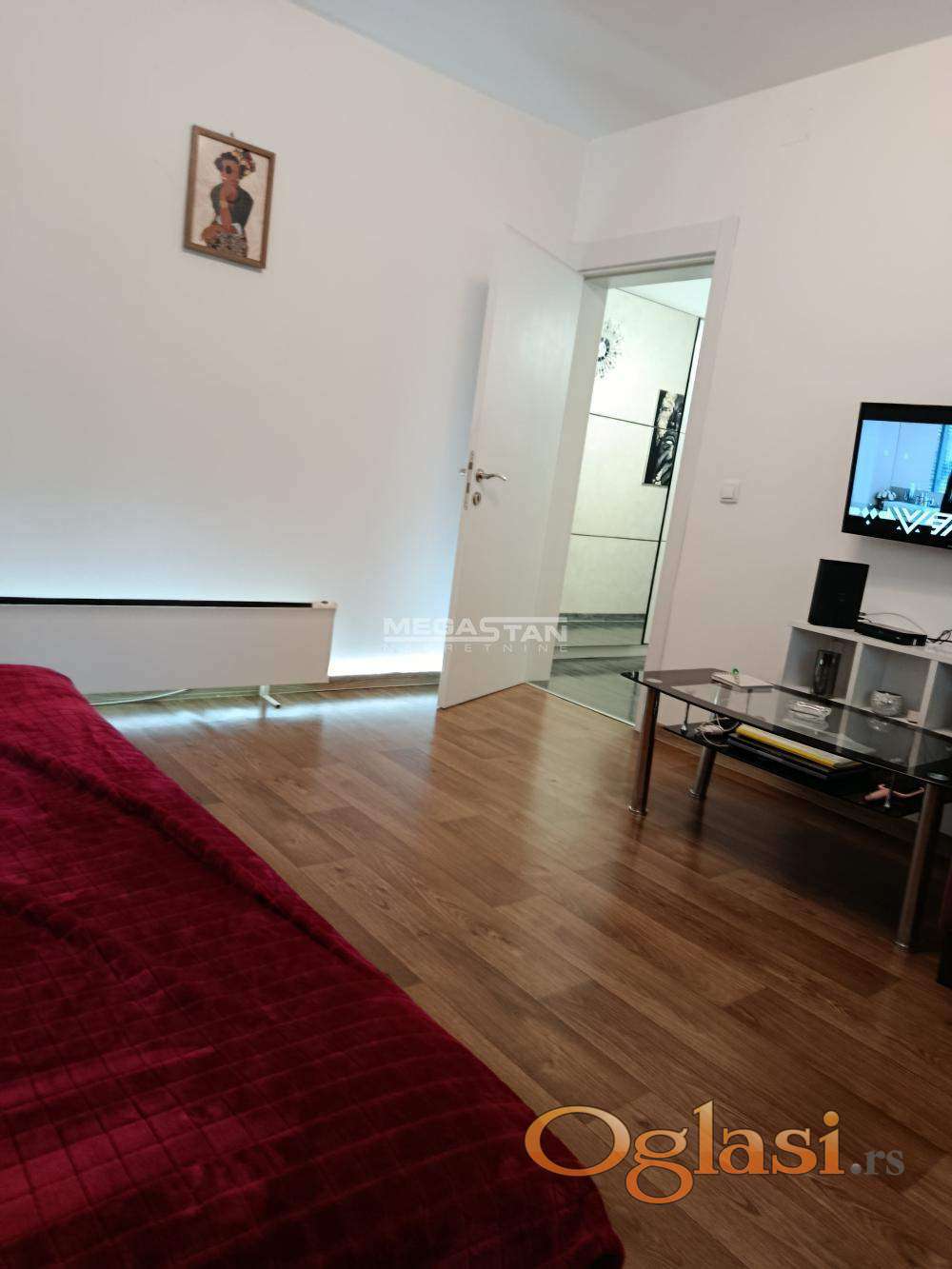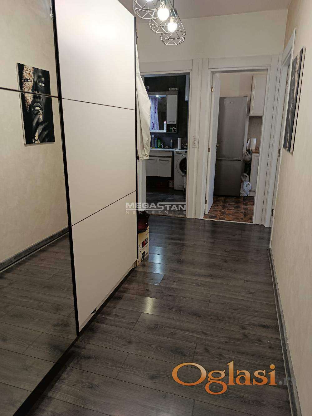 Stan se sastoji od prostranog hodnika, odvojen velikim kliznim ormanom koji ostaje u stanu.