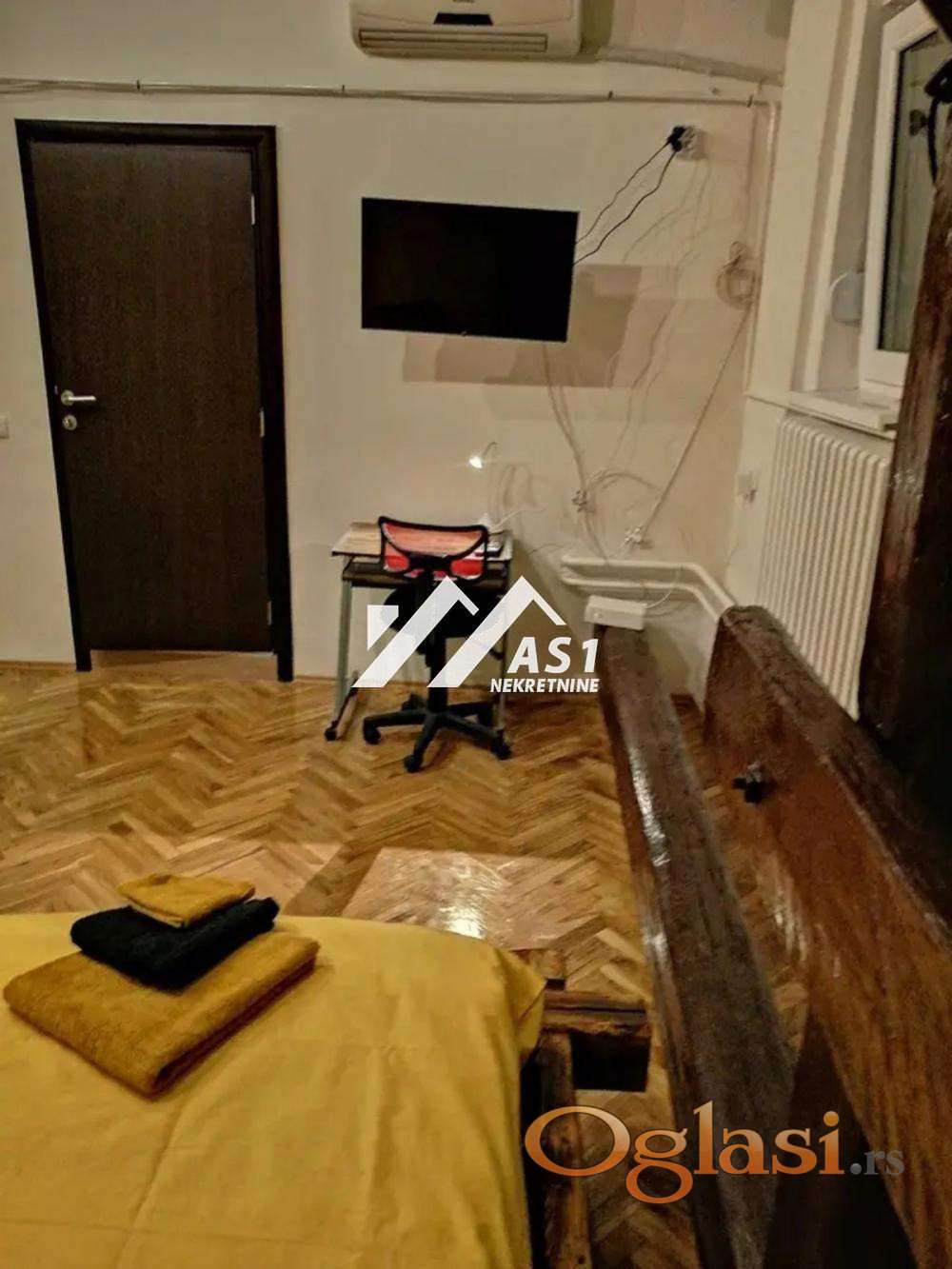 Izdajemo prelep jeddnosoban stan u strogom centru grada , preko puta Pozorišta u Jevrejskoj ulici.Nalazi se na 3.spratu bez lifta, kompletno opremljen i spreman za useljenje.Ima odvojenu kuhinju i poseduje dva mokra čvora.Stranci dobrodošli, mogu mačke.CENA 300E.Pozovite 069788803