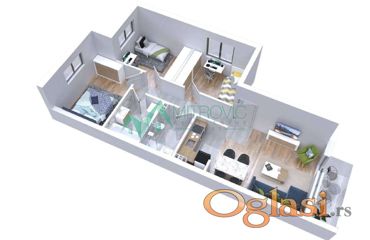 Sremska Kamenica, Popovica - Troiposoban stan 71 m2 + pripadajući parking!