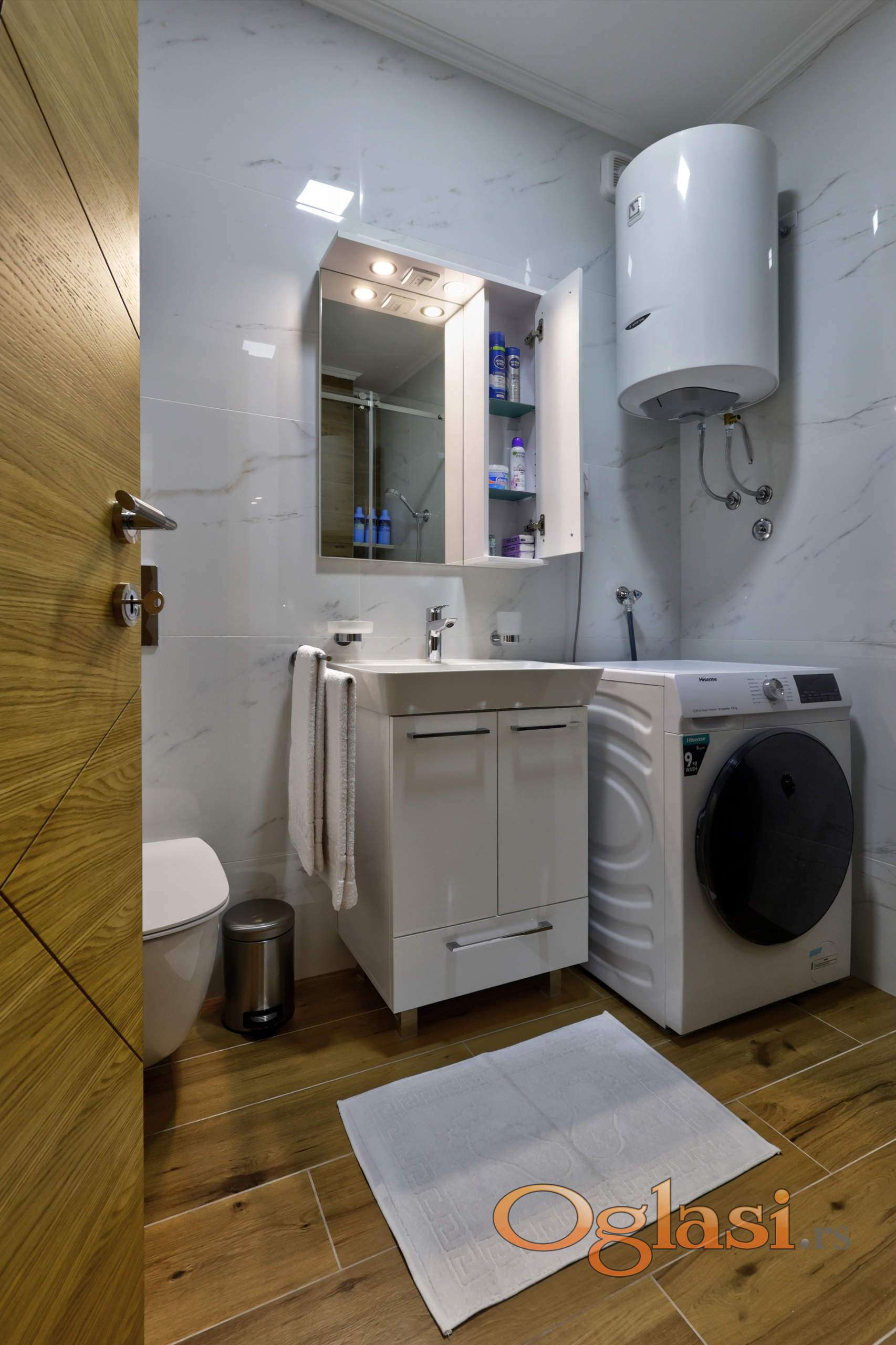 Stan poseduje kombinovanu mašinu za veš i sudomašinu.