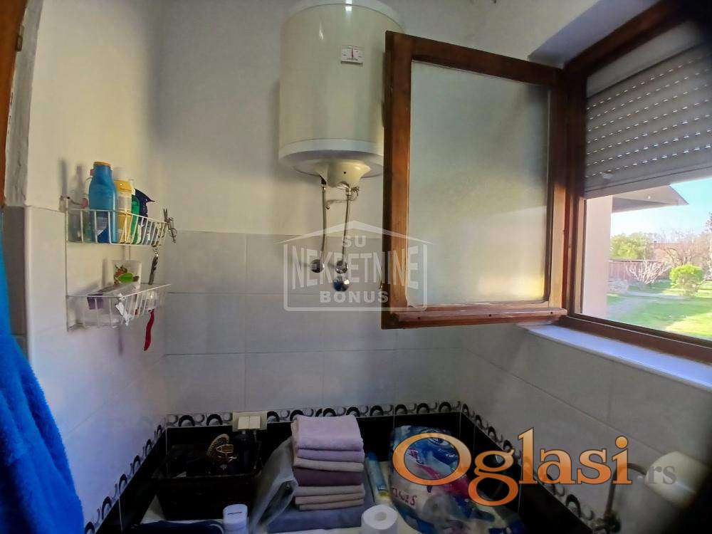 Velika kuća blizu centra grada, sa zajedničkim ulazom, ali na zasebnoj parceli i zasebno ograđenom dvorištu. Kuća je kompletno izolovana, poseduje lepo veliko dvorište, podrum i tavanski prostor iznad cele kuće. Kuća ima 2 kupatila, 3 spavaće sobe, veliki dnevni boravak s trpezarijom i kuhinjom. Na podovima su laminat i keramičke pločice. Sprovedeno je sve za video nadzor sa senzorima. U ulici je gas, može da se uvede. Kuća je legalizovana, može na kredit.