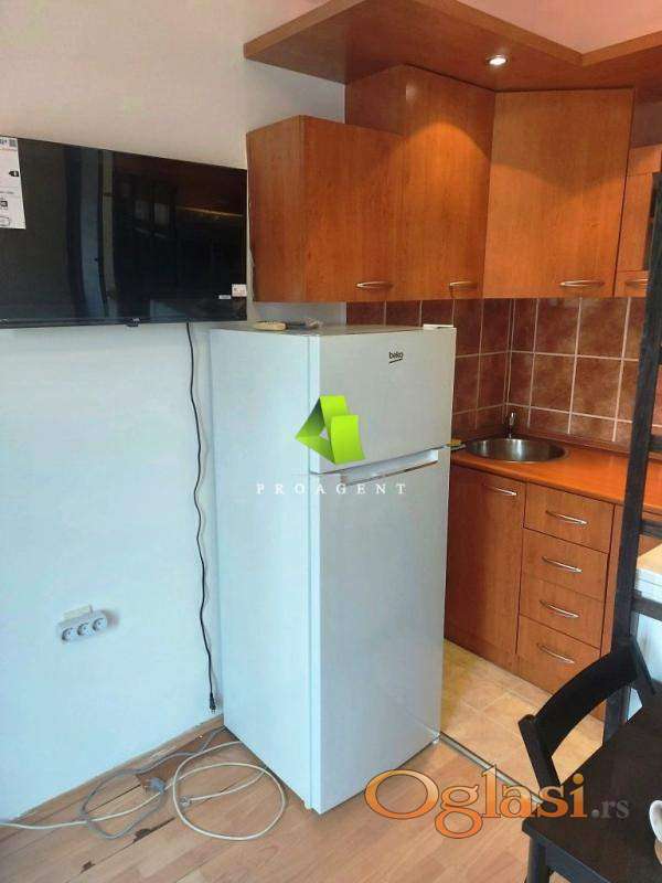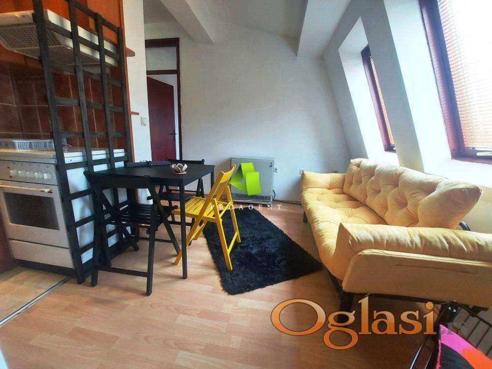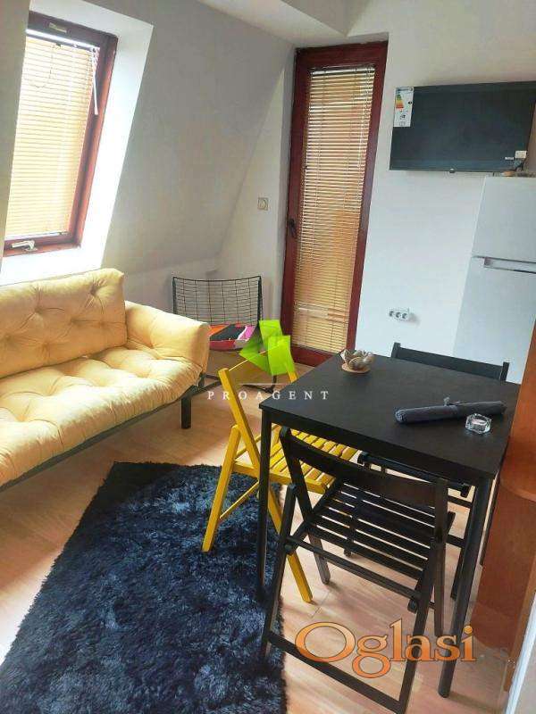 Izdaje se jednoiposoban stan u centru. Površine je 27m2 i nalazi se na V spratu zgrade bez lifta. Sastoji se od ulaznog hodnika, dnevne sobe sa kuhinjom, spavaće sobe i kupatila. Podovi su obloženi parketom a stolarija je drvena. Stan je opremljen nameštajem i potrebnim uređajima. U hodniku stana postoje pokretne stepenice koje vode u tavanski deo za odlaganje viška stvari. Ispred zgrade se nalazi parking. Slobodan od 1.maja. Agencijska usluga za iznajmljivanje nekretnine je polovina jedne mesečne kirije, koja se naplaćuje jednokratno. Hvala Vam što ste pogledali oglas. Za više informacija o ovoj ili drugim nekretninama i zakazivanje razgledanja kontaktirajte agenta na broj telefona iz oglasa (poziv, sms, viber) ili putem e-maila. Kompletnu ponudu dostupnih nekretnina možete pronaći na našem sajtu. Agencija Proagent nekretnine je upisana u Registru posrednika pod brojem: 940.
