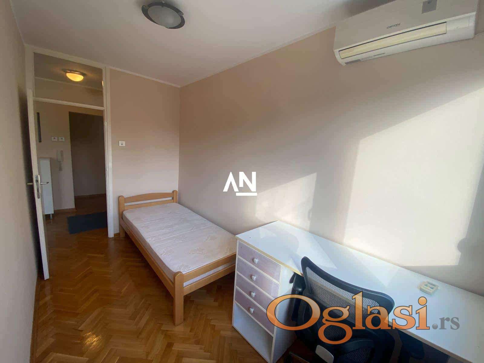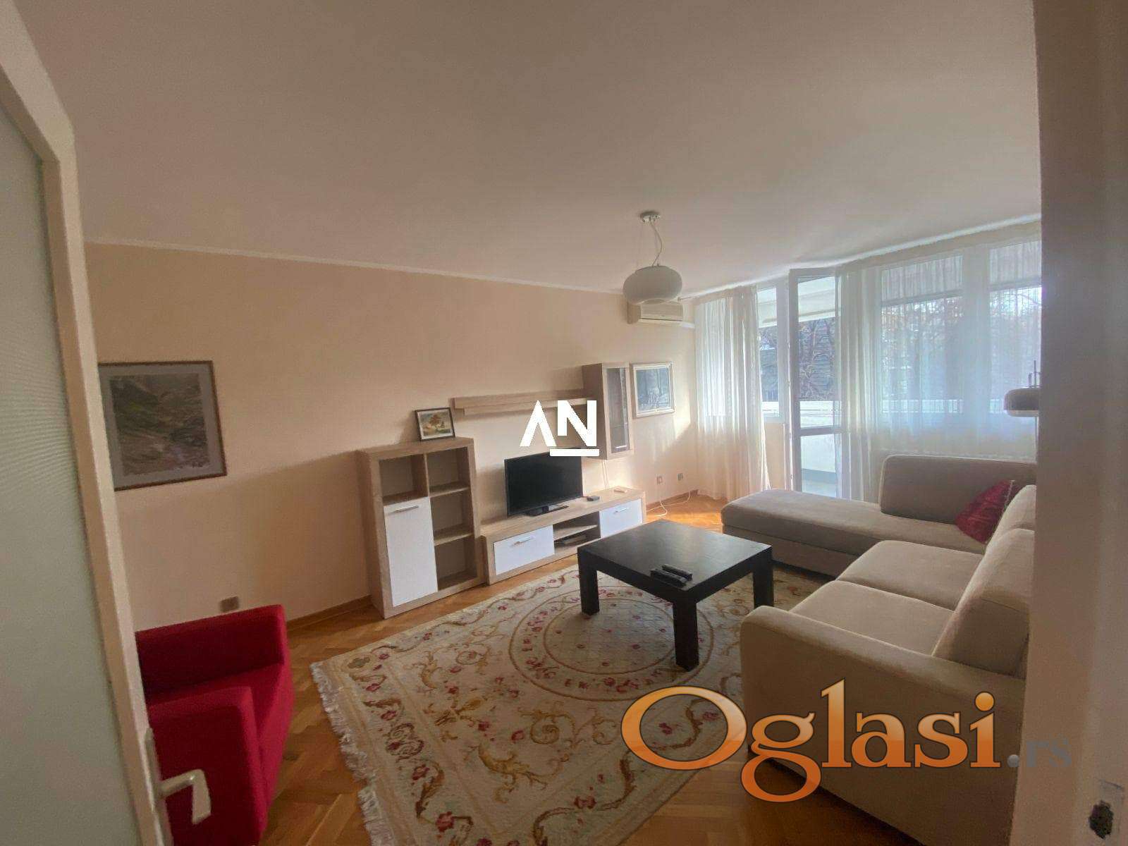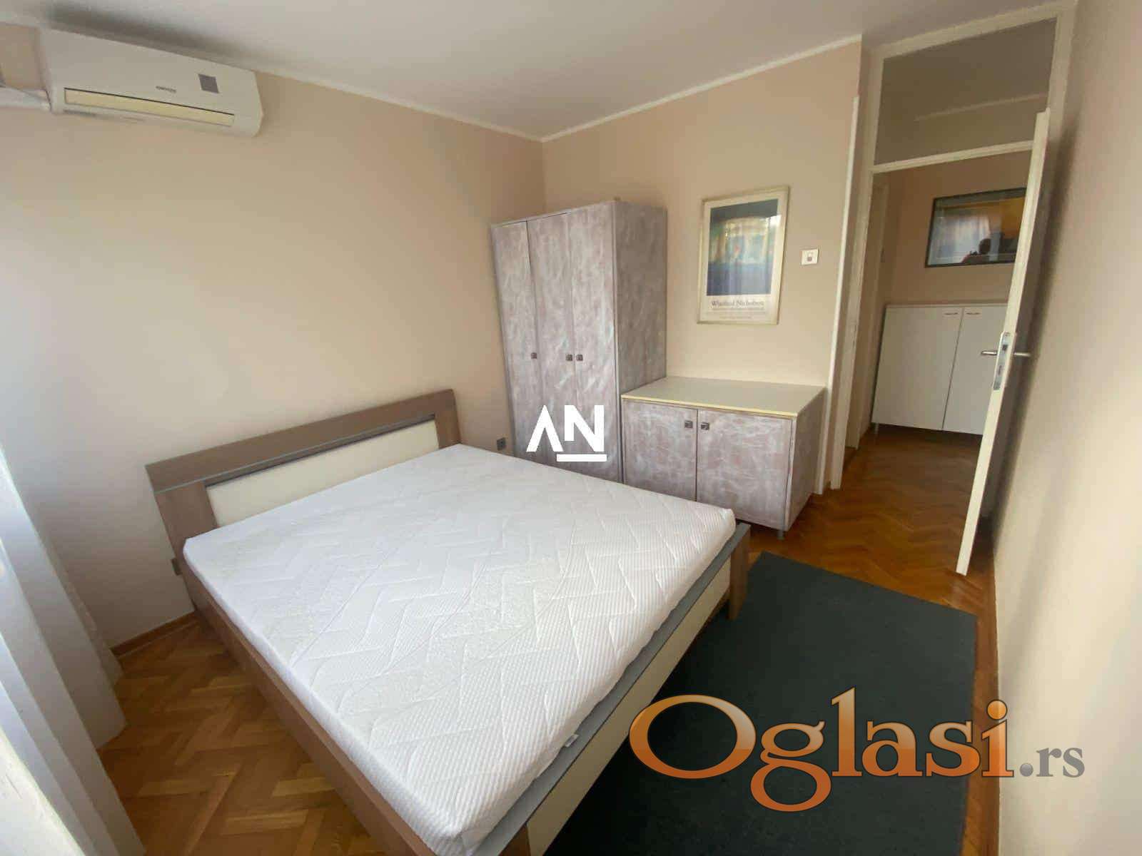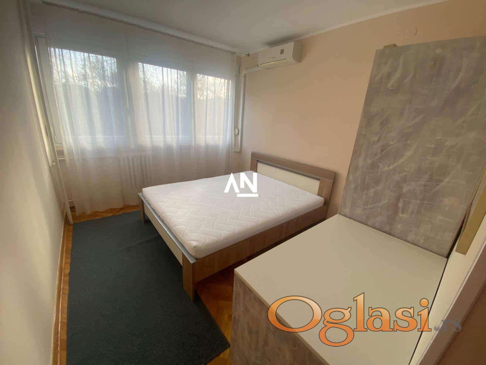 Renoviran moderno koncipiran. Dnevna i obe spavaće sobe imaju zasebne klima uređaje. Oprema uključuje sudo mašinu, veš mašinu, šporet staklo-keramički, LED-TV 40“, veliki američki plakar u hodniku. Optički Internet 300-150 + Yettel TV. Dunav je na par minuta pešice od stana kao i autobuska stanica. Ispred zgrade se nalazi veliki parking sa zelenilom. Stan je svetao, na drugom spratu, jugo-zapadno orijentisan. Stan ime dve lođe.