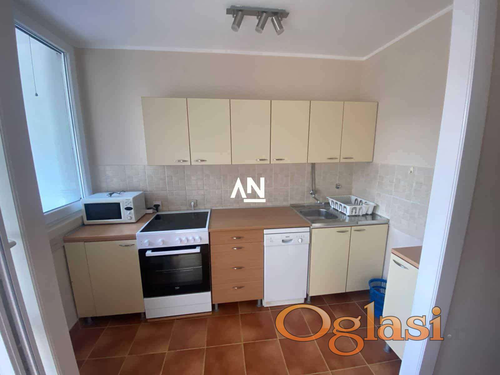 The apartment is equipped with a dishwasher, washing machine, glass-ceramic stove, 40” LED TV, and a large built-in wardrobe in the hallway. Optical internet (300/150 Mbps) and Yettel TV are available.