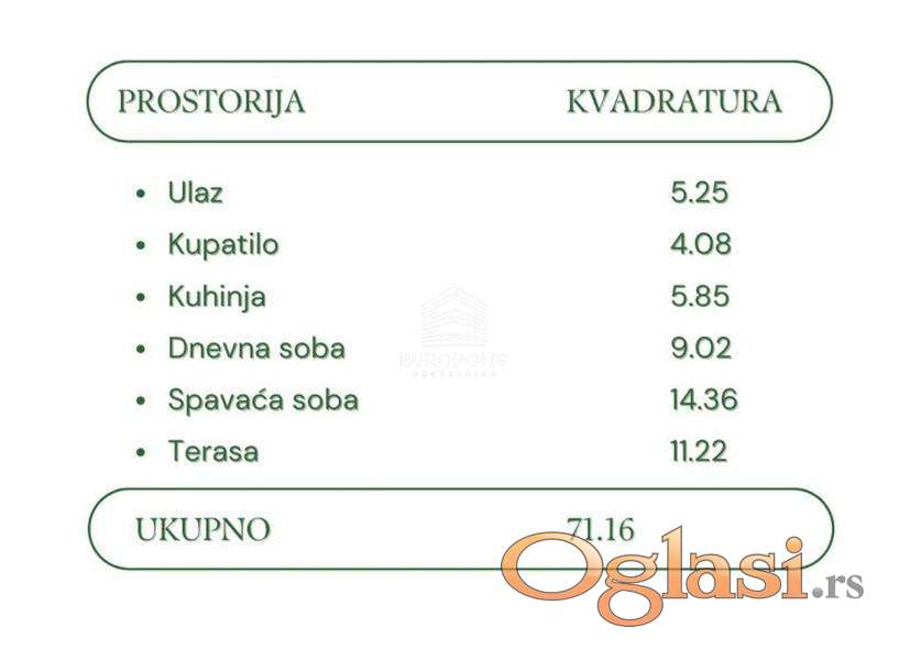 | Kvadratura: | 71m2 |