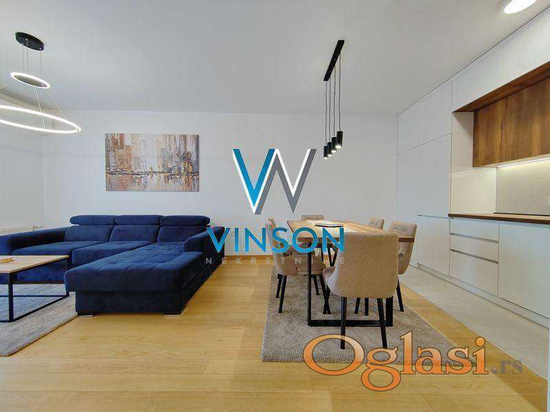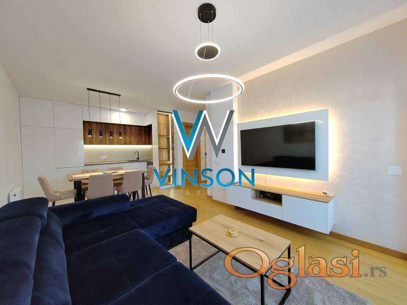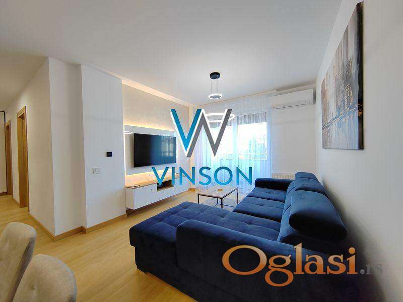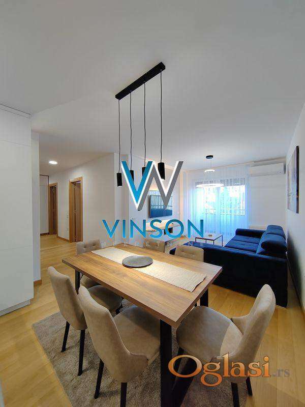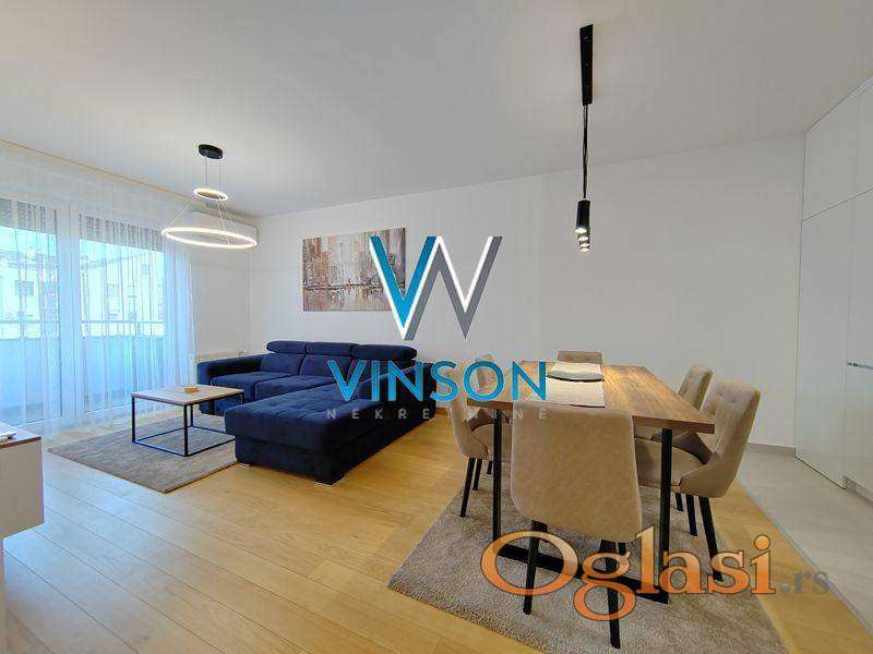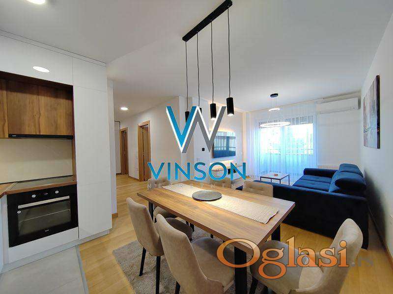 Novi Sad, Centar, ulica Đorđa Markovića Kodera. Izdvajamo iz ponude odličan, nov, po strukturi dvoiposoban stan nadomak Srpskog narodnog pozorišta, Pupinove palate i strogog centra grada. Ovaj veoma svetao, kvalitetno opremljen i moderno dizajniran stambeni prostor čine prostran dnevni boravak sjedinjen sa trpezarijom i savremeno opremljenom kuhinjom sa skrivenom ostavom, dve spavaće sobe, kupatilo sa tuš kabinom, toalet posebno i terasa sa izlazom iz dnevnog boravka. Obezbeđeno garažno parking mesto u suterenu zgrade. Pozicioniran na II spratu stambeno-poslovnog objekta sa liftom. Orijentisan ka mirnoj i tihoj dvorišnoj strani, potpuno zaštićen od saobraćajne i gradske buke. Useljiv od 10.04.2026.godine. (Vinson nekretnine, Novi Sad, Reg. br. posrednika: 1085)