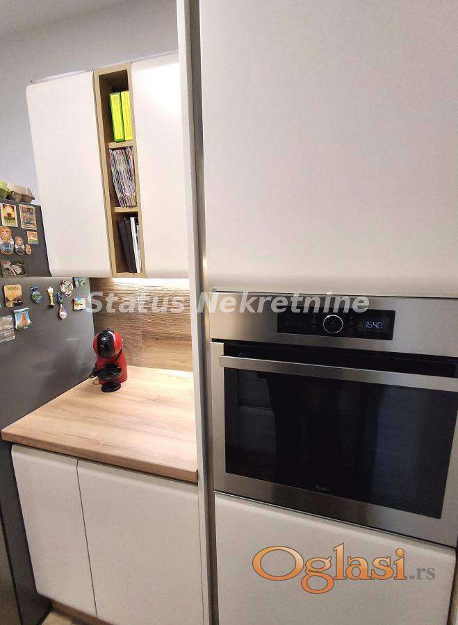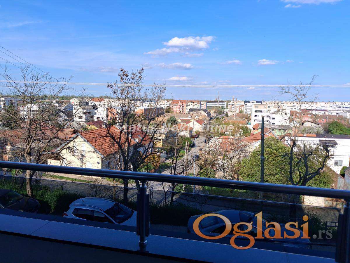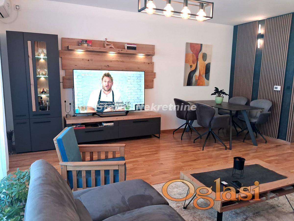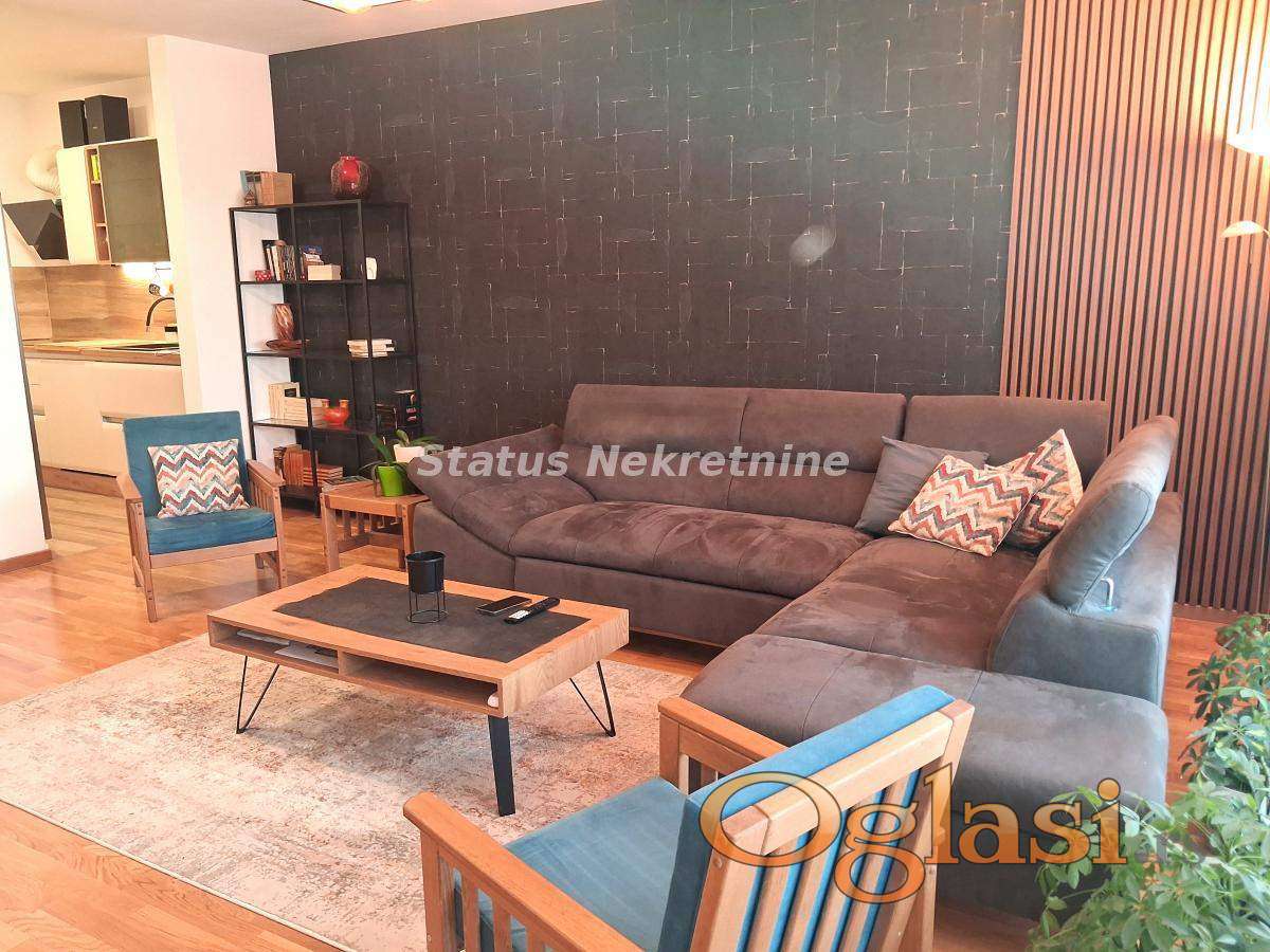 Stan se nalazi na prvom spratu zgrade koja je blago izdvojena od glavne ulice i poseduje energetski pasoš. Površine je 98 m² i funkcionalnog je rasporeda. Sastoji se od velike dnevne sobe sa trpezarijom, iz koje se izlazi na terasu sa prelepim pogledom na grad. Kuhinja je blago izdvojena, a stan dodatno čine garderober, predsoblje, kupatilo i toalet.