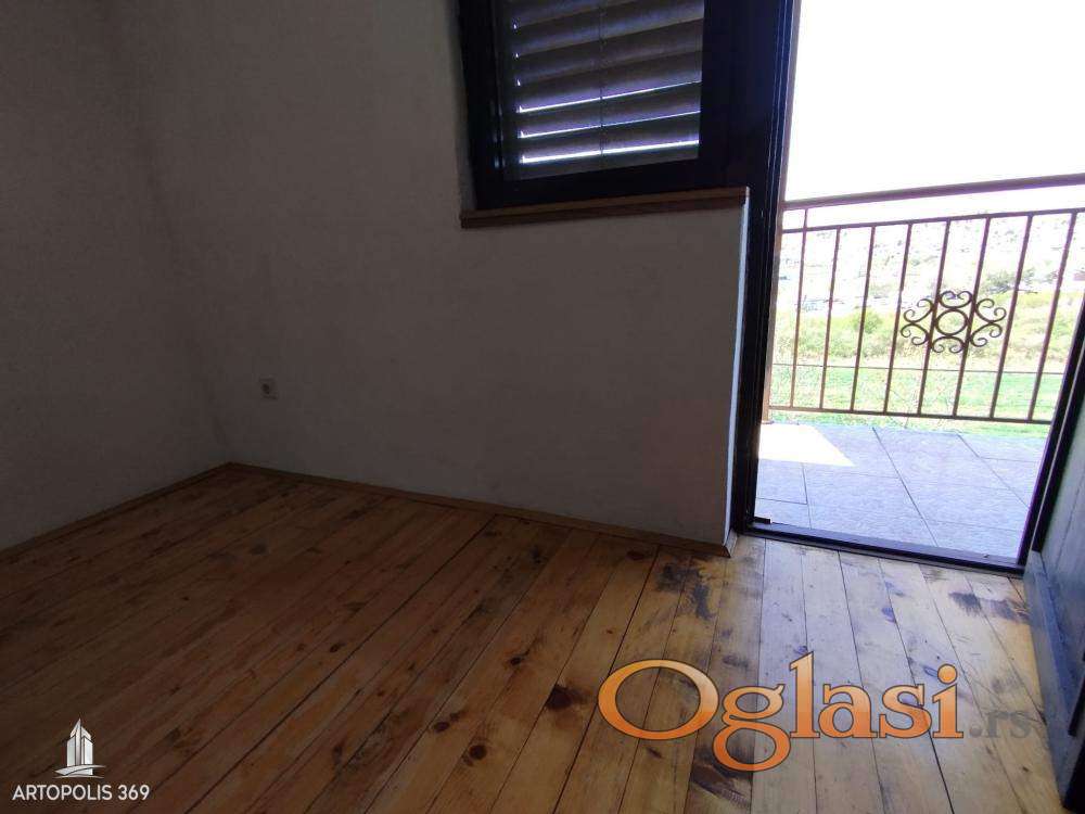 2) Prvi sprat: spavaća soba, dnevna soba sa trpezarijom i kuhinjom i kupatilo. Iz spavaće i dnevne sobe izlazi se na terasu.
