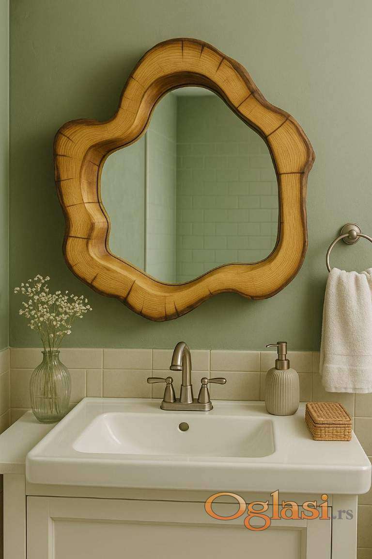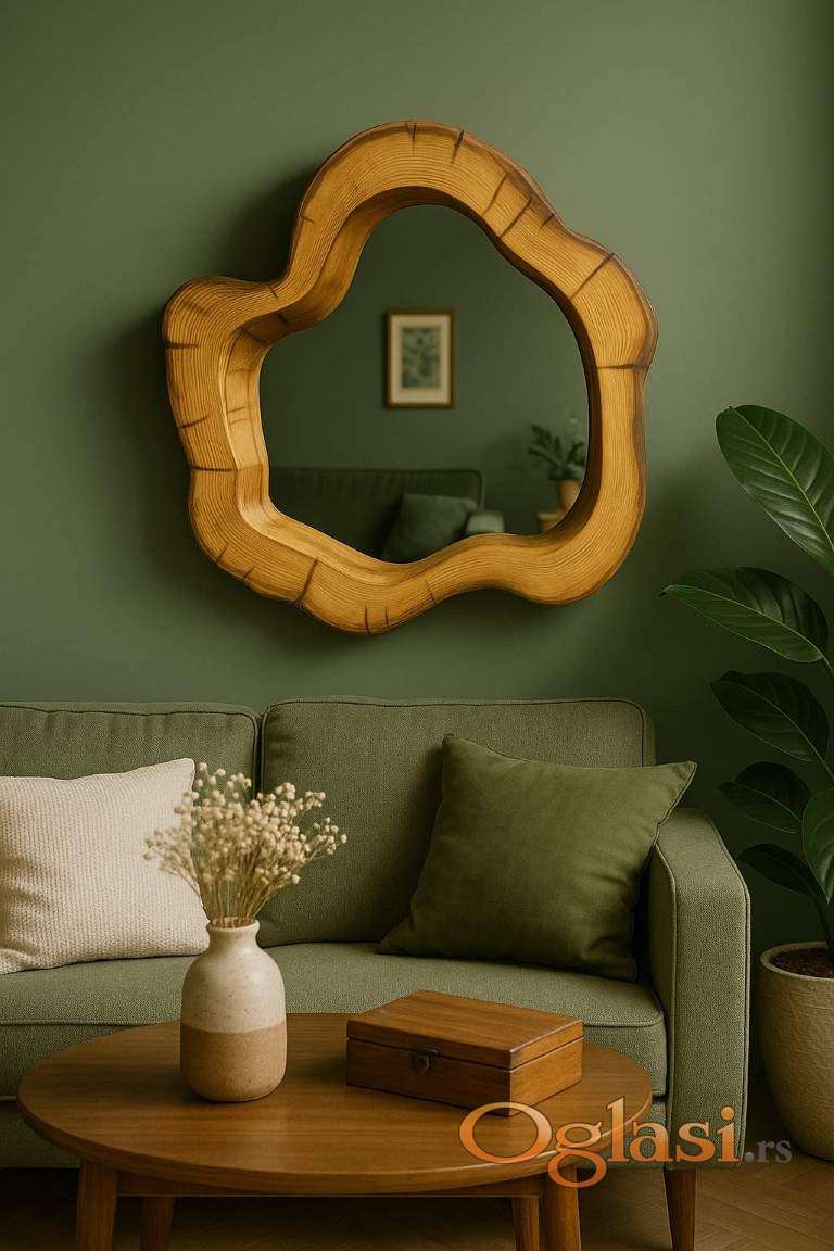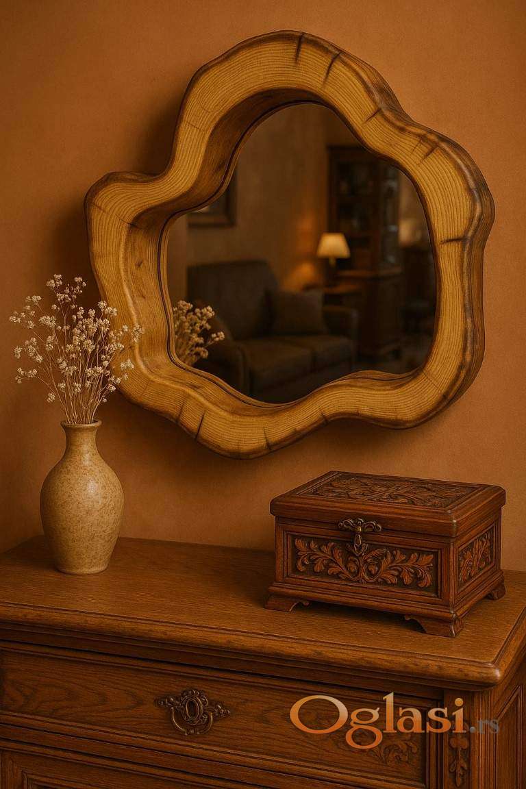 Ogledalo ima prirodan i jedinstven izgled, što ga čini idealnim za različite stilove enterijera. Bilo da je postavljeno u dnevnom boravku, hodniku ili spavaćoj sobi, ovaj komad bi mogao biti odličan dodatak enterijeru, dajući mu prirodan i autentičan izgled. Ovo ogledalo bi moglo biti savršen izbor za one koji traže funkcionalni komad nameštaja koji će se istovremeno istaći u prostoru.
