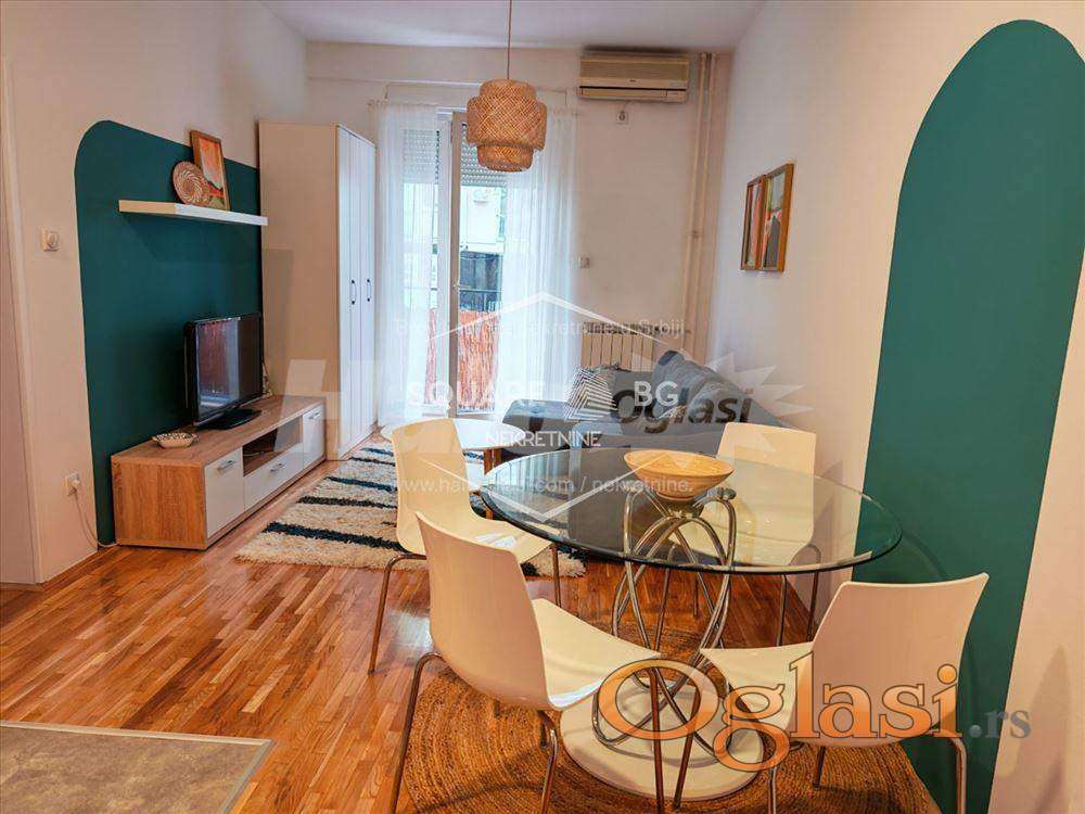 Stan je namešten, renoviran, po strukturi dvosoban i sastoji se iz dnevno-kuhinjsko-trpezarijskog dela, spavaće sobe, kupatila i terase.