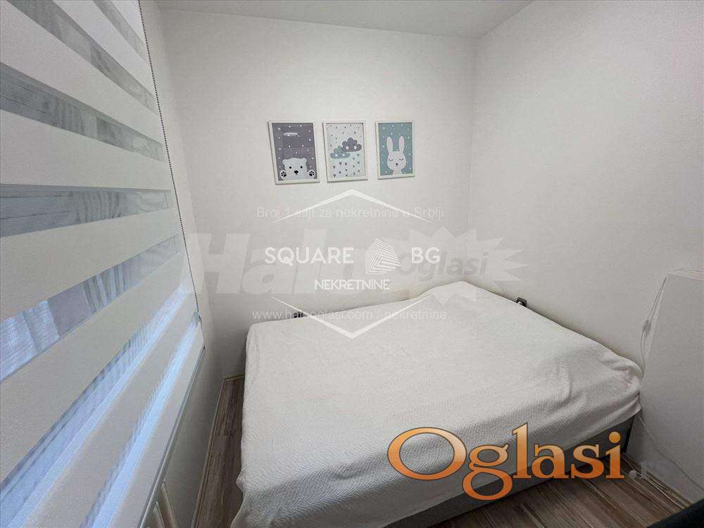 Izdaje se luksuzno opremljen, kompletno renoviran stan od 42 m², u mirnom delu bloka, okružen zelenilom i terenima. Zgrada ima dva lifta i u blizini je veliki broj parking mesta.