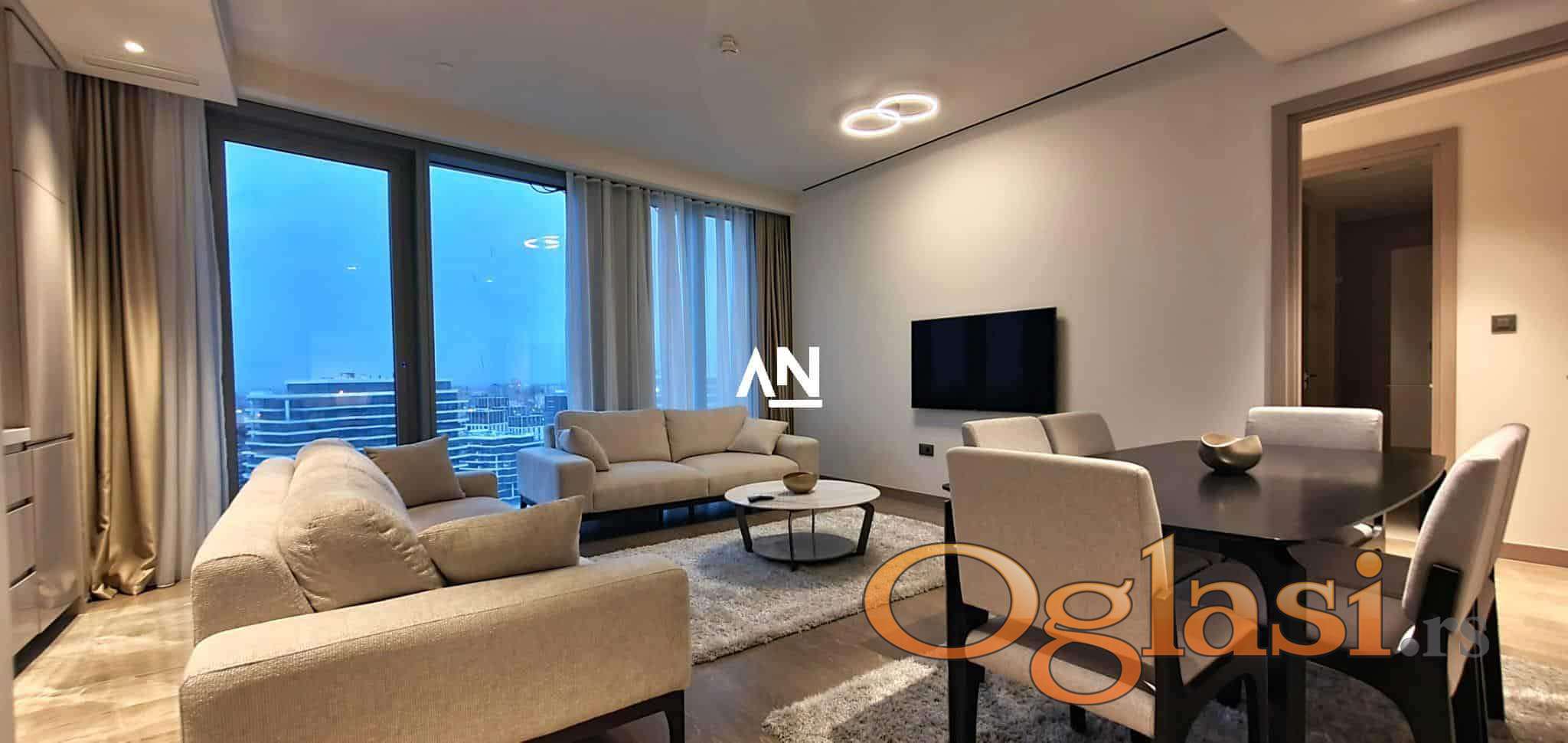 Retko dostupna nekretnina na tržištu – ekskluzivan stan u St. Regis Belgrade, smešten na 23. spratu, sa dvostranom orijentacijom i impresivnim, neometanim pogledom na reku i panoramu Beograda.