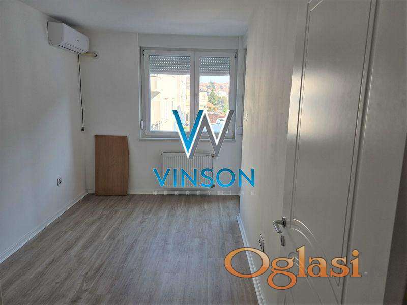 Novi Sad, Sajam, ulica Mičurinova. Izdvajamo iz ponude komforan, nov, po strukturi troiposoban stan koji se izdaje u svrhe poslovnog prostora. Nalazi se u stambenoj zgradi na odličnoj lokaciji za poslovanje, u neposrednoj blizini Novosadskog sajma i Bulevara kralja Petra. Ovaj prostor čine jedna velika kancelarija spojena sa kuhinjom koja je kompletno opremljena, tri manje odvojene kancelarije, ulazni hodnik, kupatilo, odvojen toalet i dve terase. Pozicioniran na II spratu zgrade sa liftom. Ugovor se sklapa sa fizičkim licem. Zakup na duži vremenski period ozbiljnim zakupcima. Useljiv odmah.(Vinson nekretnine, Novi Sad, Reg. br. posrednika: 1085)