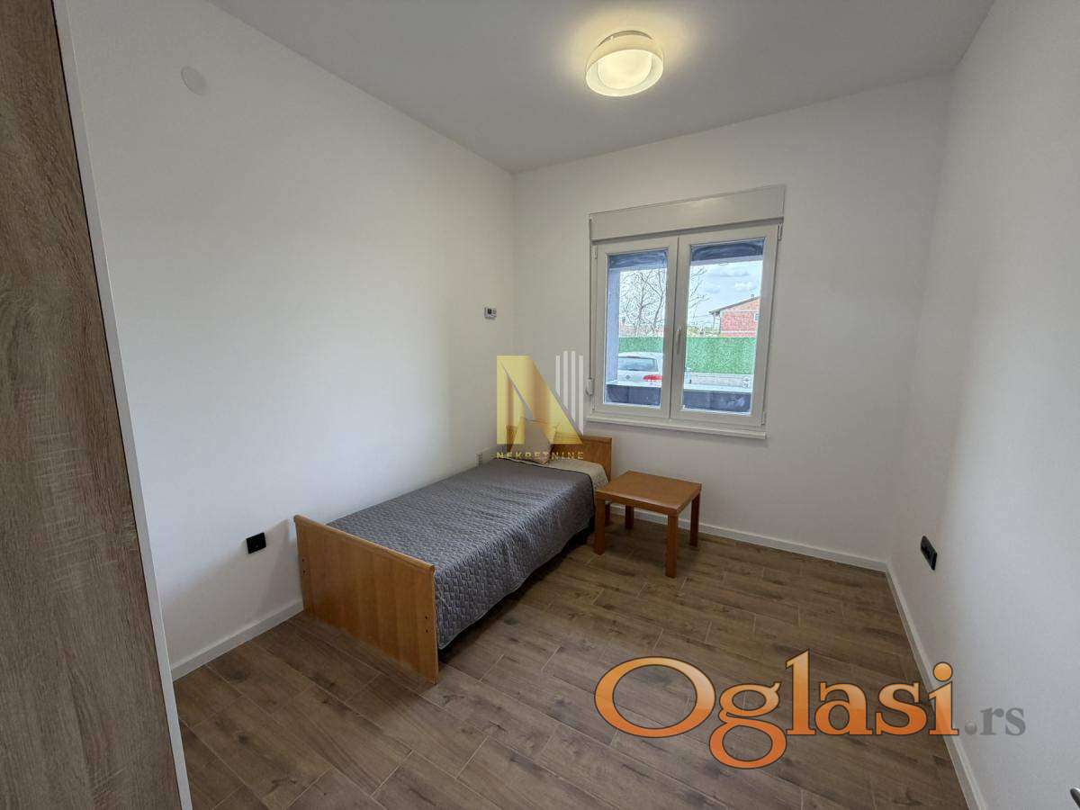Izdaje se nov, neuseljavan, potpuno namšten dvoiposoban stan na prizemlju u ulici Avrama Mrazovića.