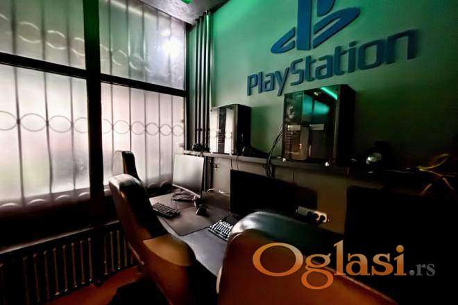 Prostor je funkcionalno organizovan i trenutno posluje kao kompjuterska igraonica koja radi od 2019. godine. Na ulazu se nalazi prijemni deo sa dve PlayStation pozicije, pogodan za kraća zadržavanja i organizaciju manjih turnira. U nastavku je glavna prostorija sa više kompletno opremljenih gejming mesta – profesionalni računari, gejmerske stolice i stolovi, sve uredno održavano i spremno za nastavak rada bez dodatnih ulaganja. U zadnjem delu lokala nalazi se šank sa pratećom opremom, što prostoru daje dodatnu funkcionalnost i mogućnost proširenja ponude.