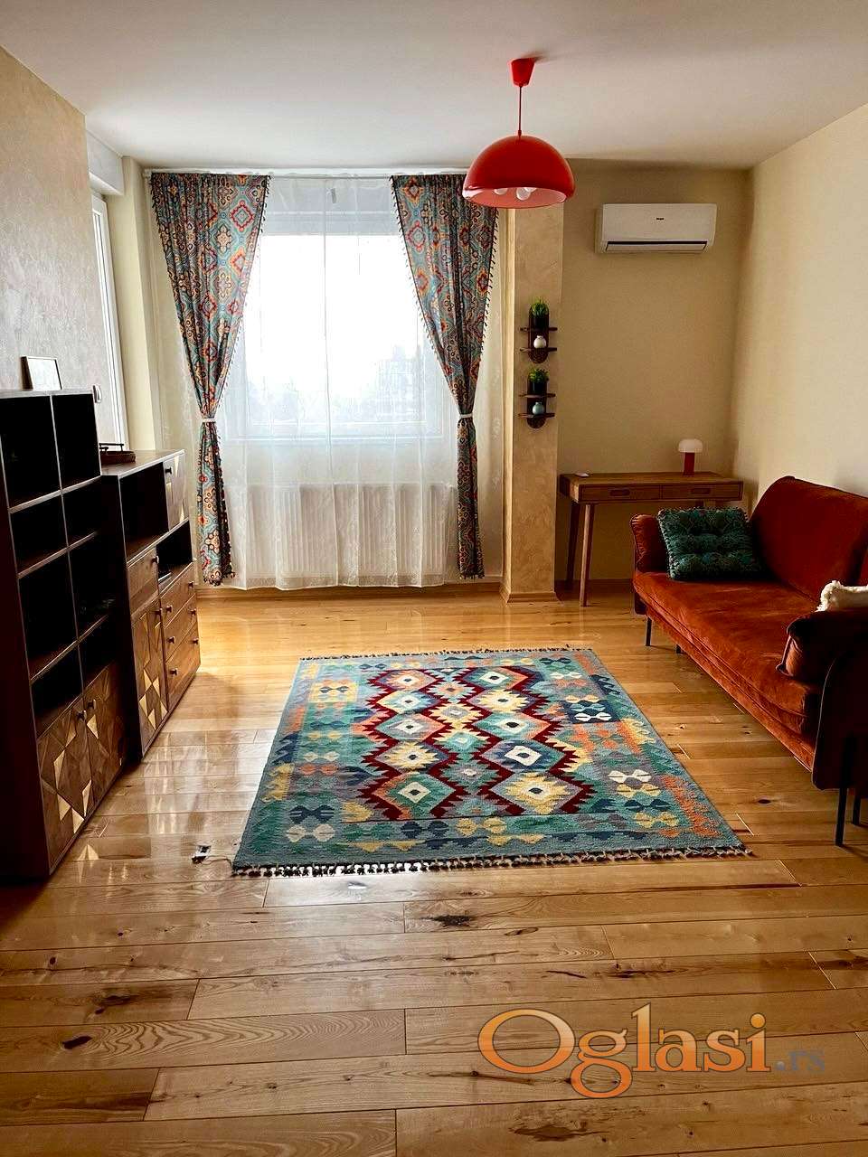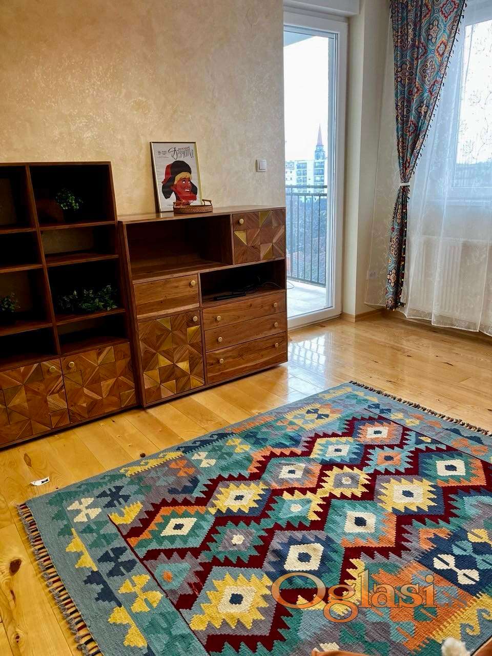 Autentičan ćilim iz Avganistana u dnevnoj sobi.