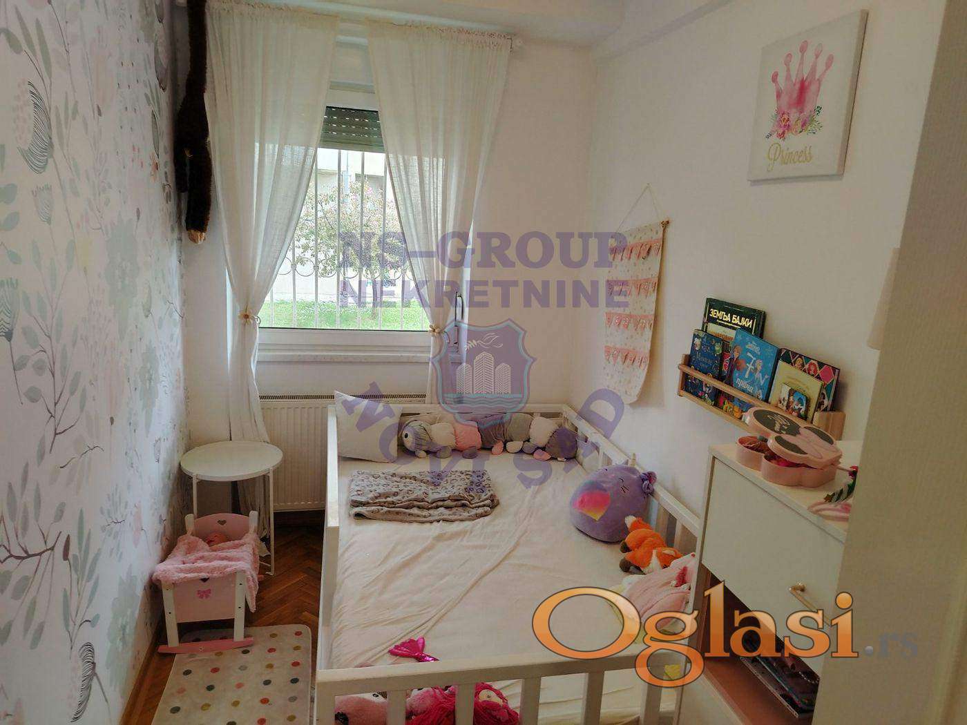 Predstavljamo vam nekretninu u mirnom delu Novog Naselja - Šarengradu. Stan na prizemlju izdignut nekih 2-3 stepenika, dvorišne orijentacije sa rešetkama na prozorima kao i ugrađenim komarnicima. Okolo je puno zelenih površina sa uređenim parkom i klupama što omogućuje ugodan život za decu i celu porodicu. Ne zahteva značajnija dodatna ulaganja, uknjižen je 1/1 na vlasnika što omogućuje kupovinu i kreditnim kupcima. Ugradni ormari i drugi elementi uključujući i kuhinjske su uračunati u cenu.