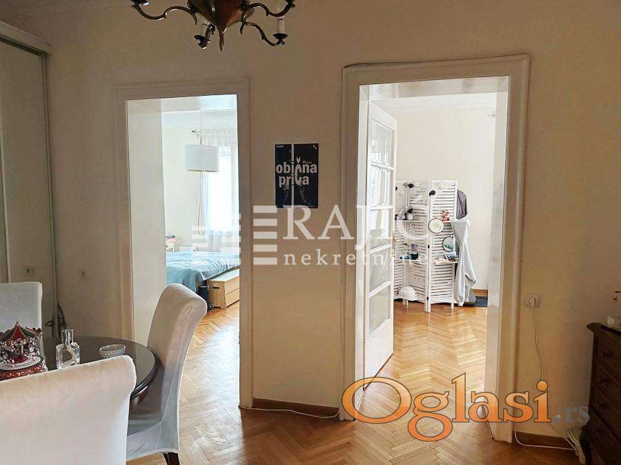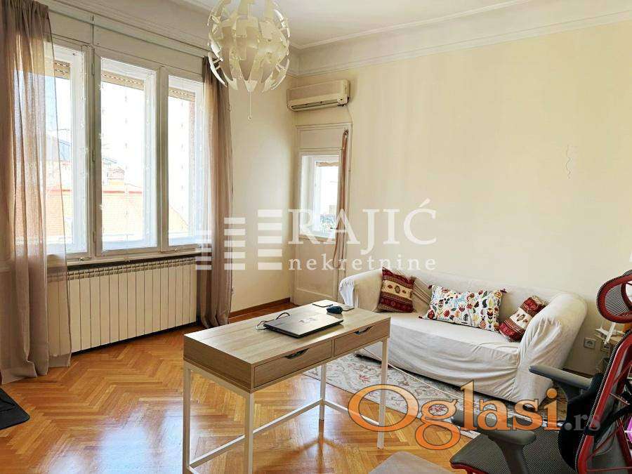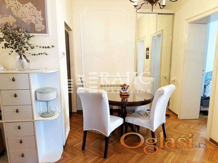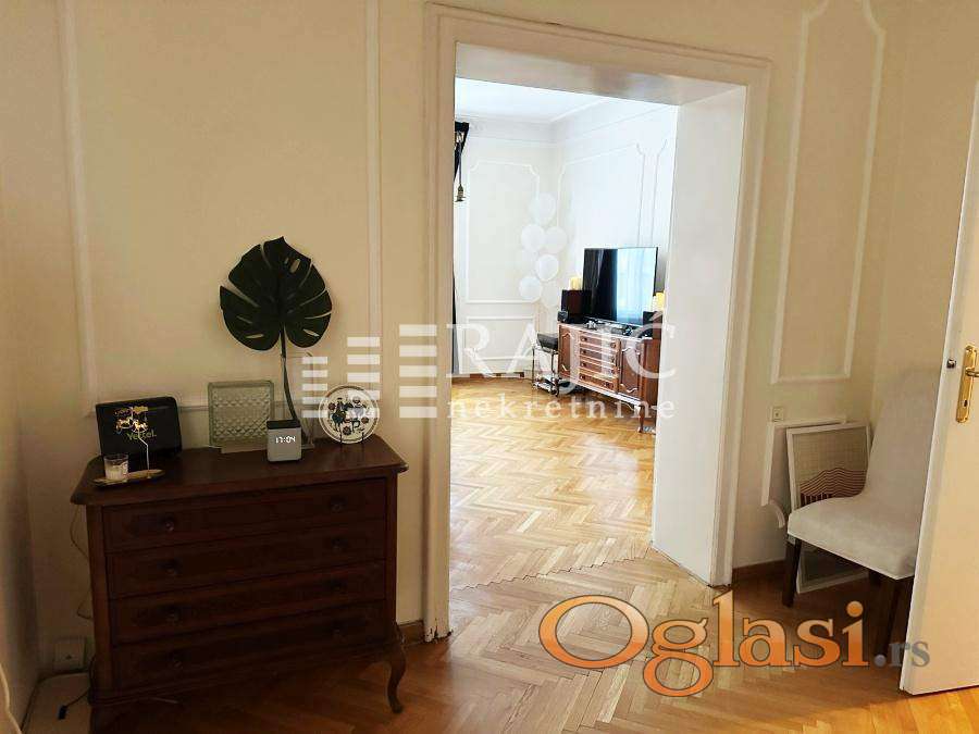 Prostran, namešten salonski stan na jednoj od najtraženijih lokacija u Beogradu – u ulici Kralja Petra. Ovaj stan odiše duhom starog Beograda, ali je prilagođen potrebama modernog stanovanja.