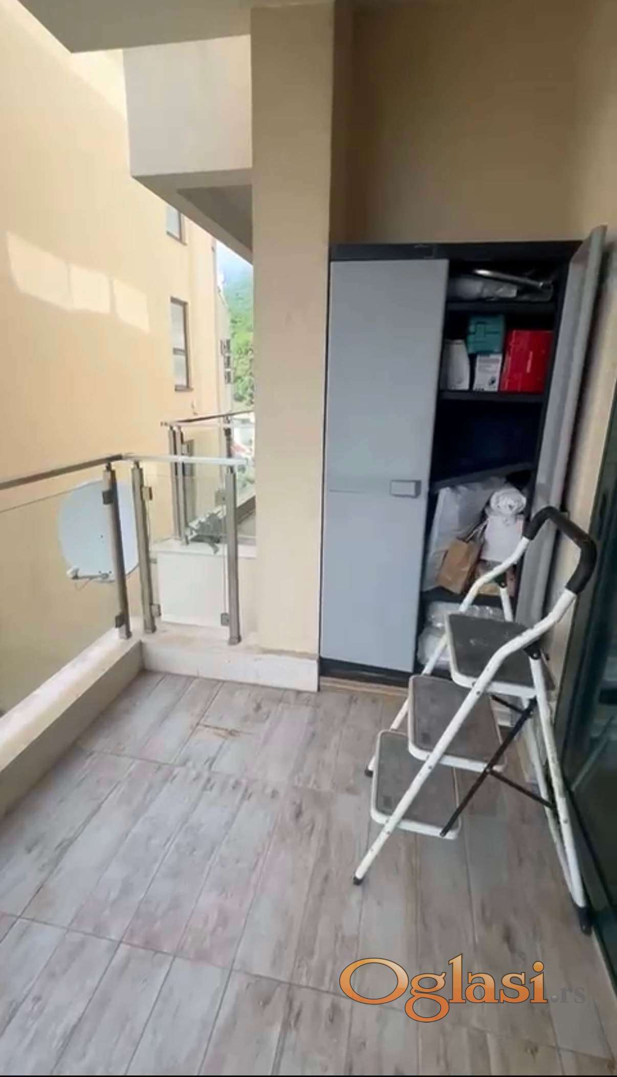 Stan u Prznu, kompletno namesten. Izlazak iz zgrade na dve strane i ka magistrali i ka plazi. Parking sa gornje strane. Ima i drugu veliku terasu koja gleda na more. I dugacak hodnik/ ostavu. Vise slika u junu.