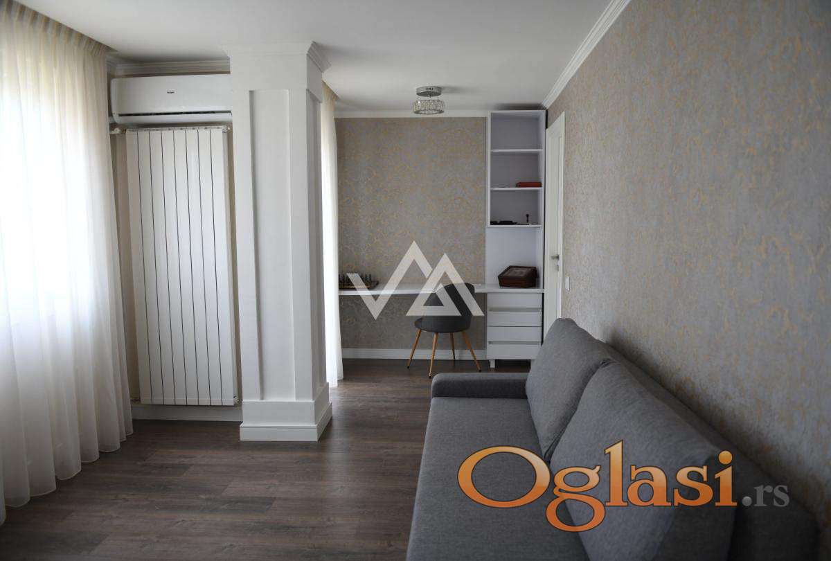 Stan je dvostrano orijentisan, što obezbeđuje odličnu prirodnu osvetljenost i prijatnu ventilaciju tokom celog dana. Kompletno je renoviran “u fulu”, sa pažljivo biranim materijalima i modernim nameštajem, pružajući visok nivo komfora i estetike.