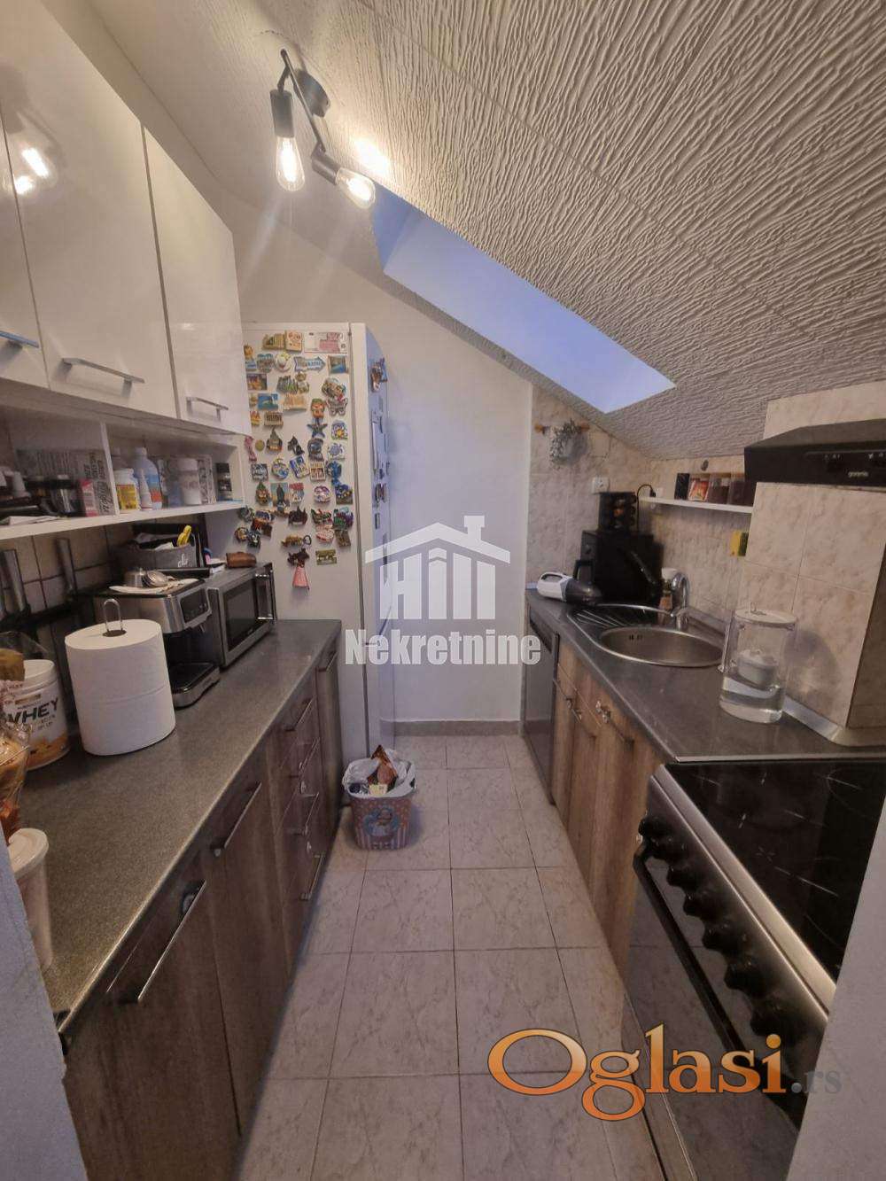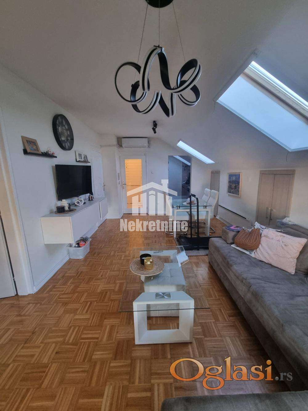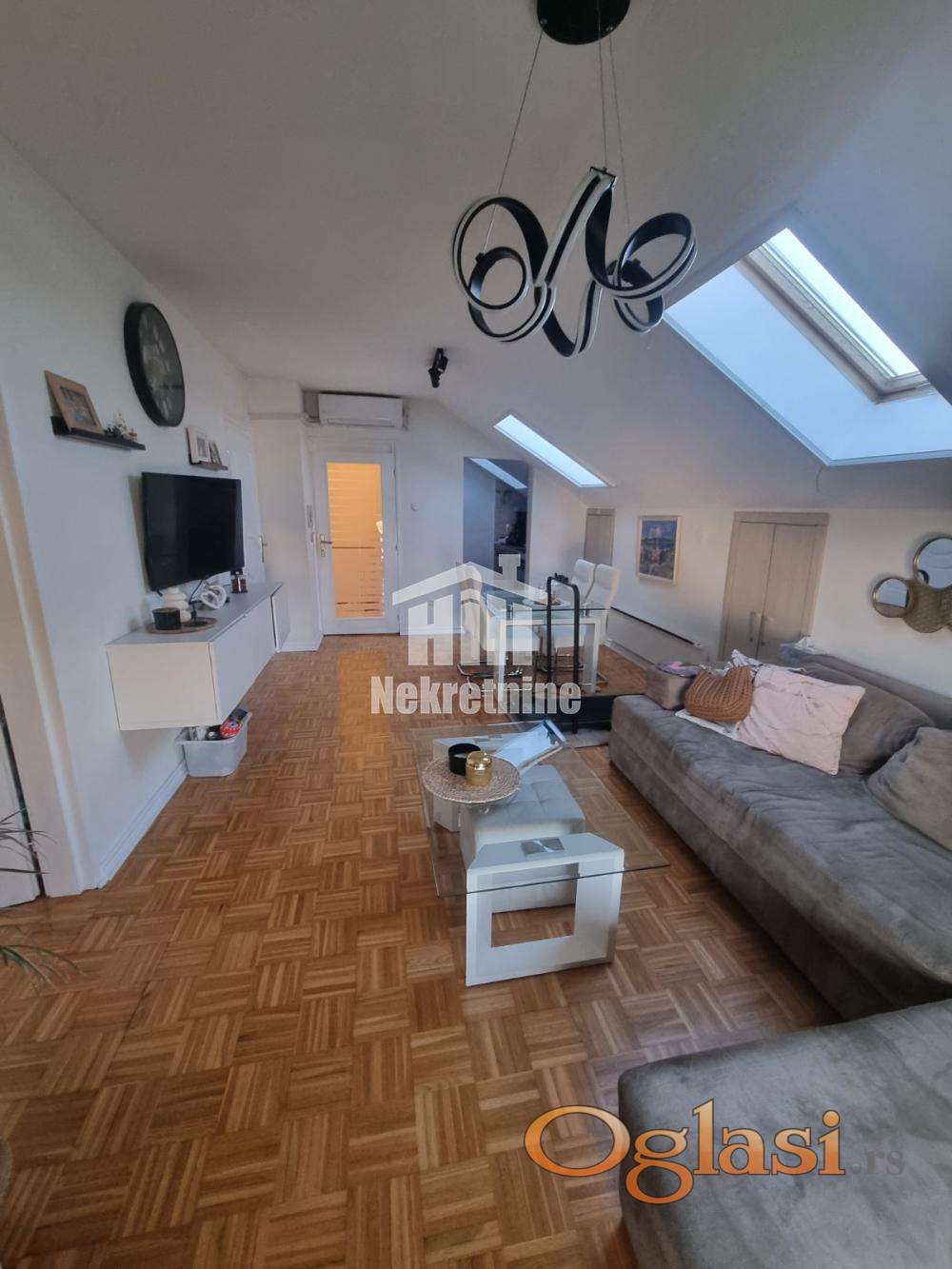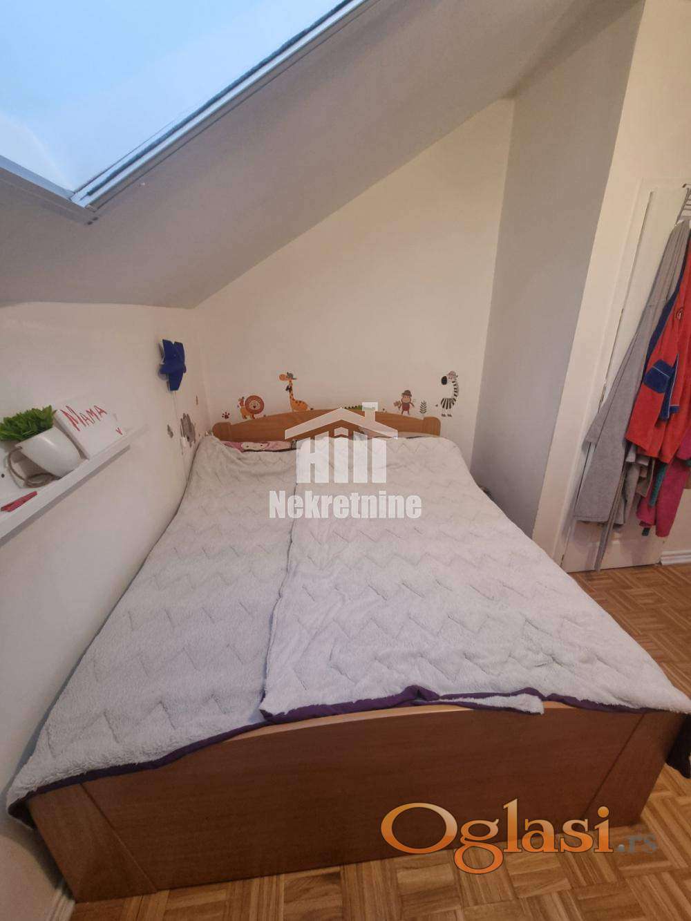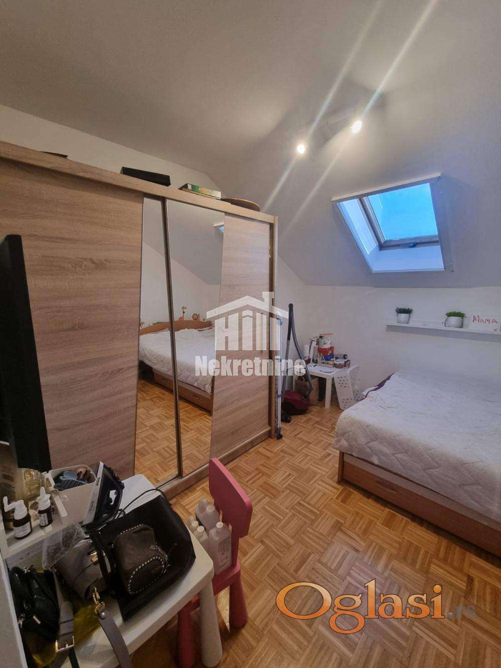 Namešten i izuzetno svetao trosoban stan (60m2 + 7m2 ostava) u potkrovlju zgrade na jednoj od najlepših lokacija na Bežanijskoj kosi. Stan je pažljivo održavan, sa odličnim rasporedom prostorija koji maksimalno koristi svaki kvadrat. Stan poseduje prostranu dnevnu sobu sa trpezarijom, kuhinju, 2 spavaće sobe, kupatilo, toalet, hodnik, ostavu. U stanu je grejanje na norveške radijatore pa je samim tim infostan znatno niži. Zgrada se nalazi u mirnom kraju sa dosta zelenila, u neposrednoj blizini škola, vrtića, marketa i stajališta gradskog prevoza. Odlična povezanost sa auto-putem i ostatkom grad. Parking ispred zgare je uvek dostupan i besplatan. Posrednička naknada u skladu sa opštim uslovima poslovanja. 2%