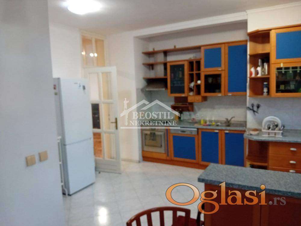 Prostorije: predsoblje, dnevni boravak iz koga se izlazi na zastakljenu terasu, trpezarija, kuhinja sa ostavom, toalet. poseban spavaći blok - 3 sobe i 2 kupatila, lodja.