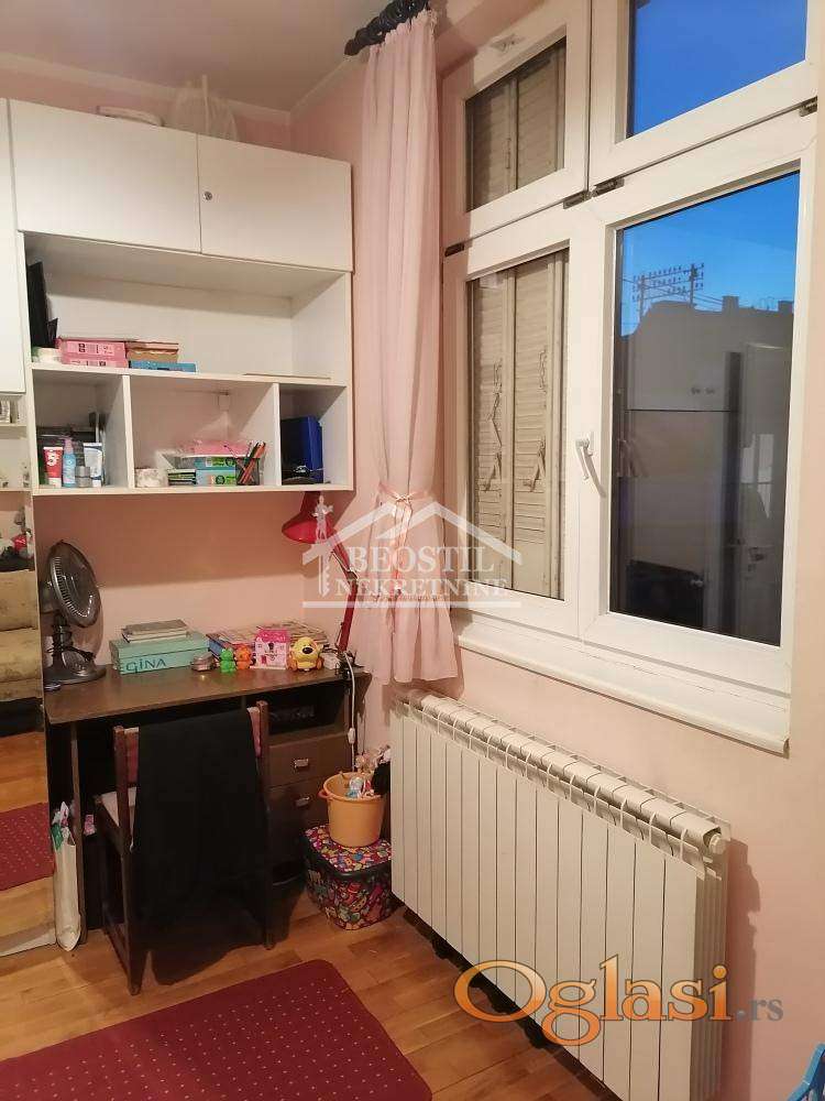 U prilici smo da vam ponudimo odličan, dvostrano orijentisan i održavan porodični stan uknjižene korisne površine 91 m2 plus terasa od 8 m2. Zgrada je locirana u mirnom okruženju, blizu Karadjordjevog parka i Hrama Svetog Save. Prostorije: ulazni hodnik, prostran dnevno-trpezarijski prostor sa kuhinjom, ostava, dva mokra čvora, tri odvojene spavaće sobe, velika zastakljena terasa. Iznad stana je tavanski prostor (mogućnost za proširenje). Odlična povezanost sa svim delovima grada. Grejanje je centralno. Klima. Mali broj stanova u zgradi, stan je sam na spratu. Uredjeno dvorište zgrade. U zgradi postoji lift. Ponudjeni stan sigurno zavredjuje ozbiljnu pažnju iz više razloga (sjajna lokacija, potencijal, odlična cena po m2, dobra investicija). Pozovite nas za detalje ponude.