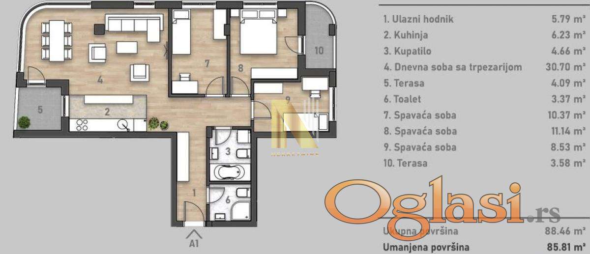 Enterijeri će biti opremljeni premium materijalima, a sama zgrada će biti izgradđena prema najvišim standardima, pružajući udobnost i sigurnost stanovanja.