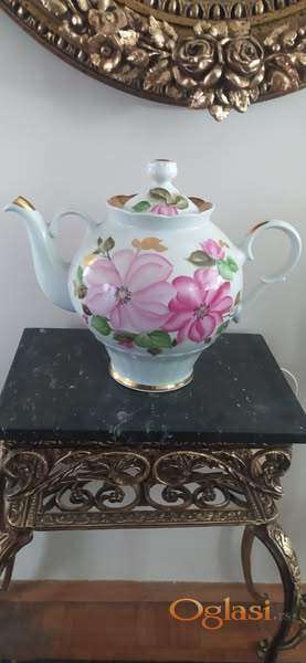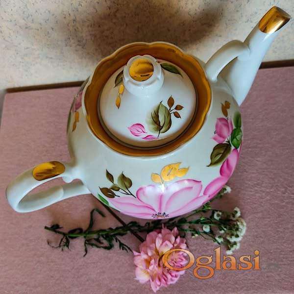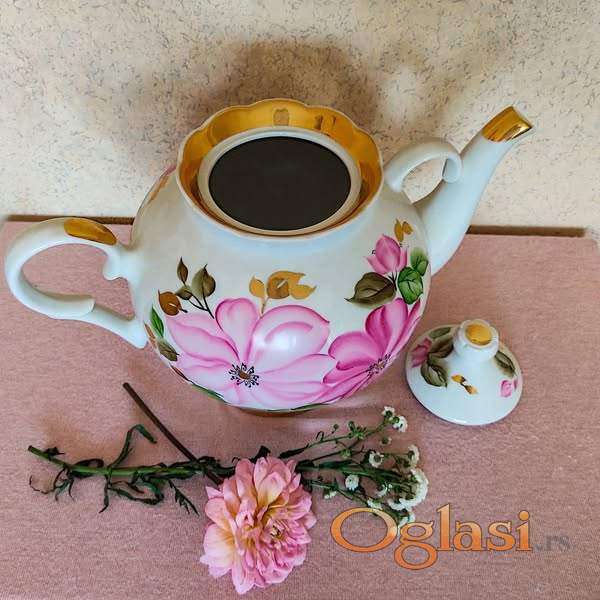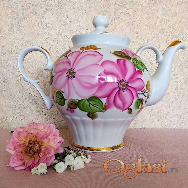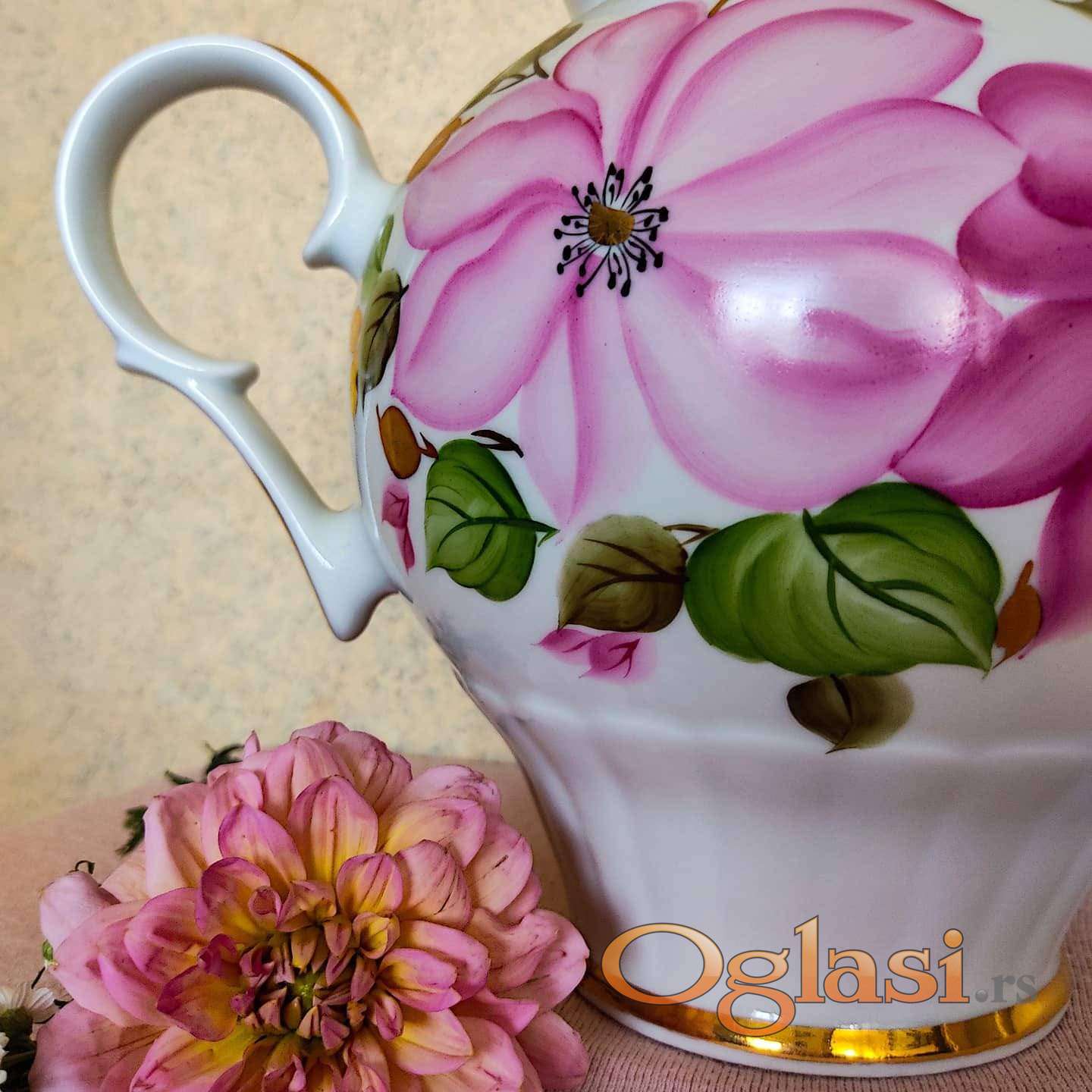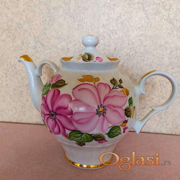 Dulevo porcelan, SSSR, ruski čajnik, ručno oslikan, sa elementima pozlate.