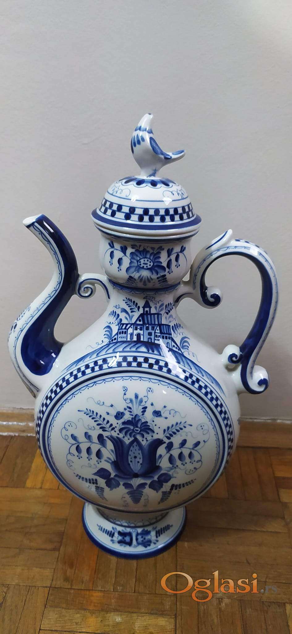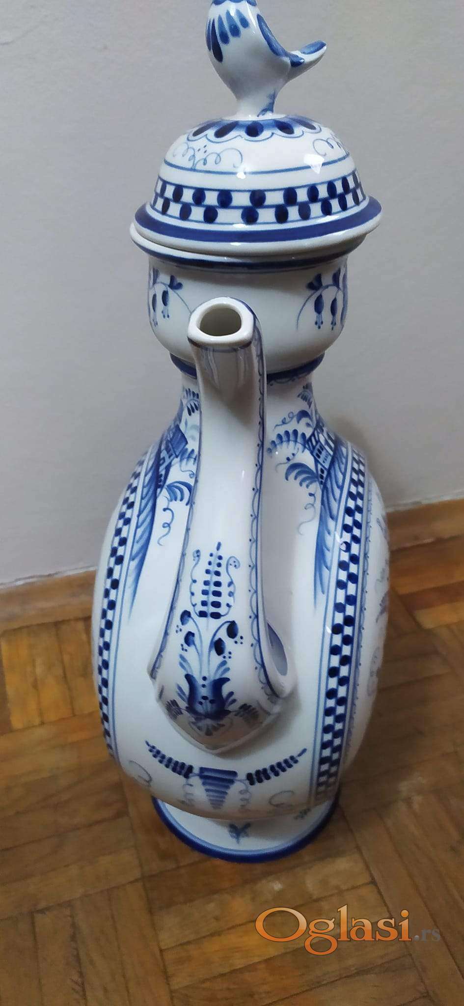 Veliki, bogato rucno oslikani čajnik, sa Gzhel žigom, visine 42cm.